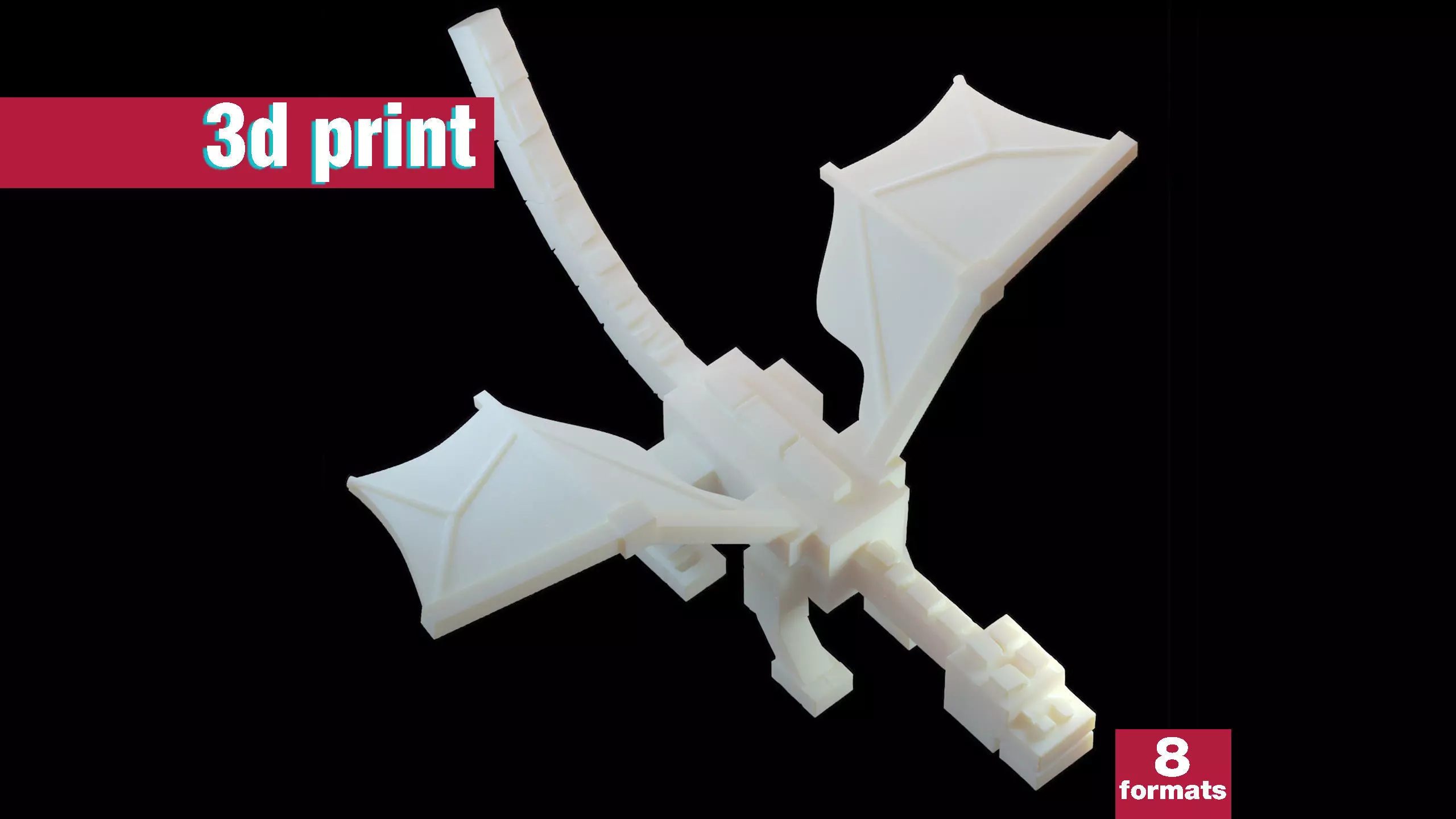 Unleash the mighty beast from the End with this Minecraft-inspired stylized dragon! Crafted in a voxel-style design, this low-poly creature captures the spirit of blocky fantasy worlds with clean geometry, sharp edges, and wide majestic wings.