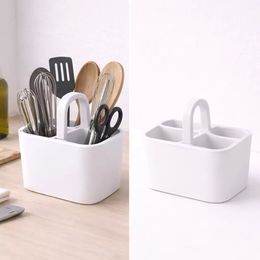 Each compartment is optimized to hold commonly used kitchen tools such as spoons, spatulas, ladles, scissors, brushes, and small bottles.The raised internal walls prevent items from mixing, while the open-top design ensures quick access during cooking or cleaning.