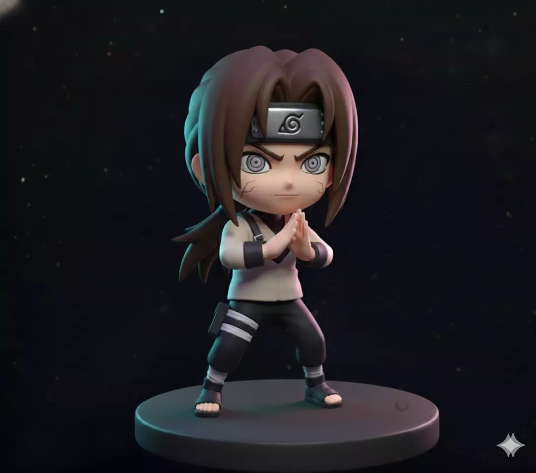 Inspired by the Naruto universe, this design combines his serenity and strength with a cute and collectible touch.His pose reflects concentration and mastery of the Byakugan, with details such as his headband, classic attire, and the unmistakable Hyuga Clan hairstyle.