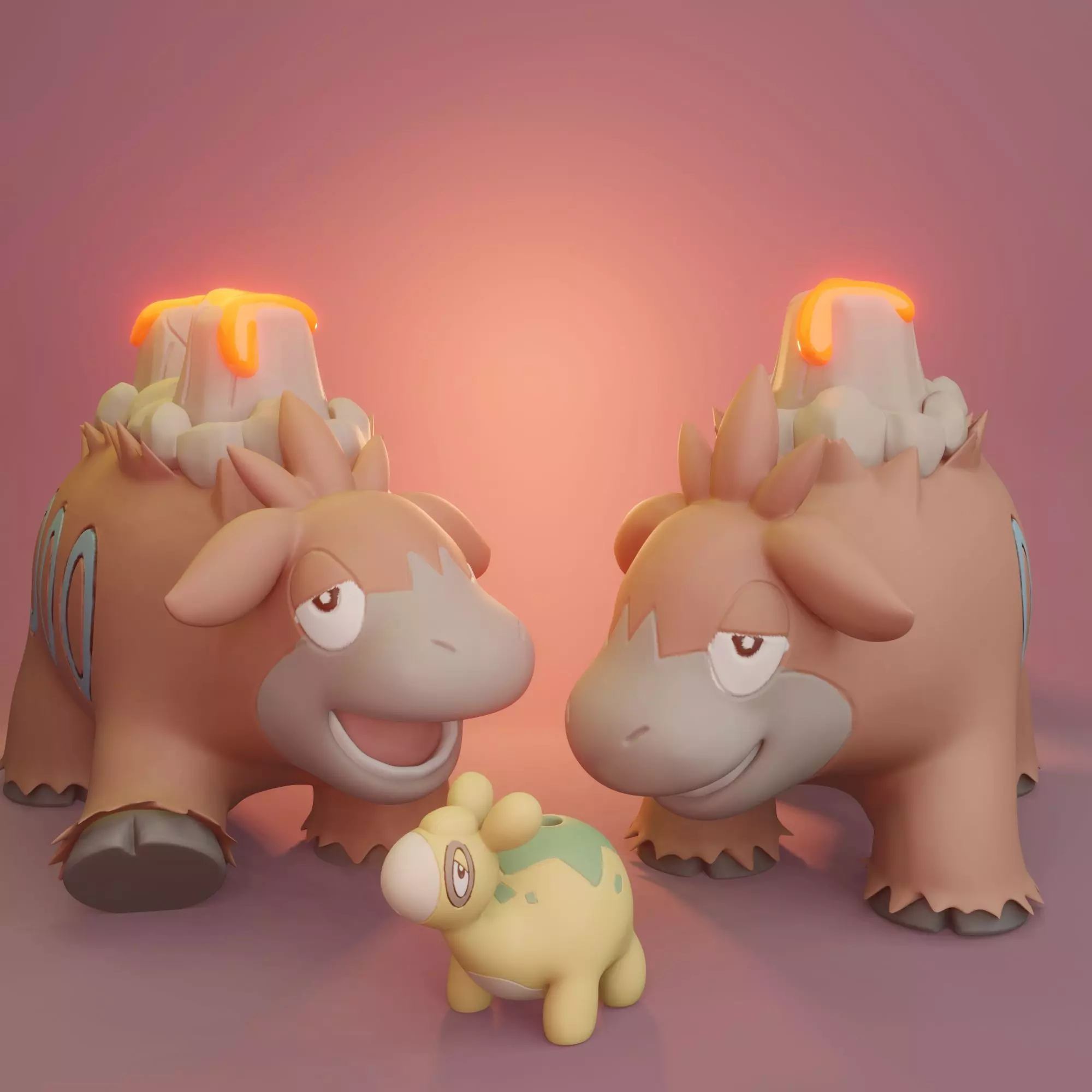 Numel and Camerupt model made entirely in Zbrush, print ready. Includes 2 different poses and one version with/without lava for each for Camerupt and one for Numel. Feel free to pm me if you have any questions.