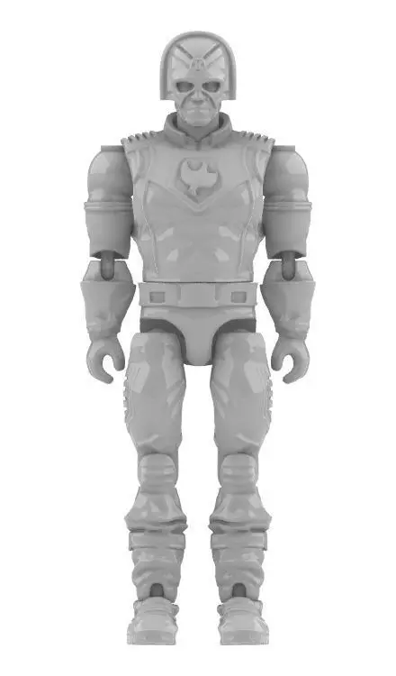 Action figure designed to the same scale as 1980s Gi Joe, can be scaled to other dimensions, made for assembly with interlocking parts, and features ball joints for articulated parts.