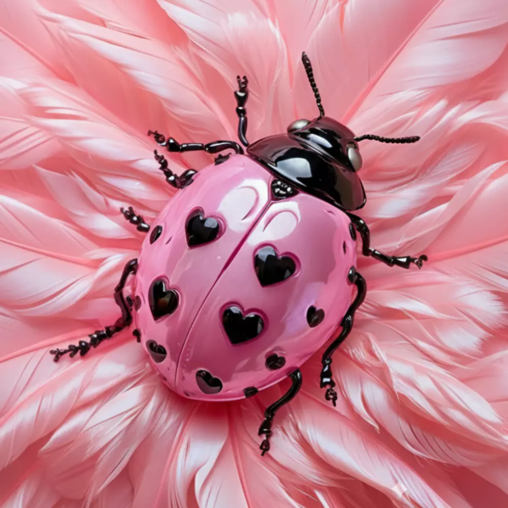 he pink heart ladybug kawaii fuchsia jewelry features a charming, oversized ladybug pendant in vibrant fuchsia pink, shaped like a heart for an extra cute, romantic twist. Its glossy enamel surface sparkles with tiny cubic zirconia accents on the wings and body, mimicking dewdrops, while black spot details and gold edging add playful contrast. This kawaii-style piece, often 20-25mm in size, dangles from a delicate chain, evoking Japanese-inspired designer toy aesthetics with its whimsical bug motif perfect for streetwear or pop culture collectors.