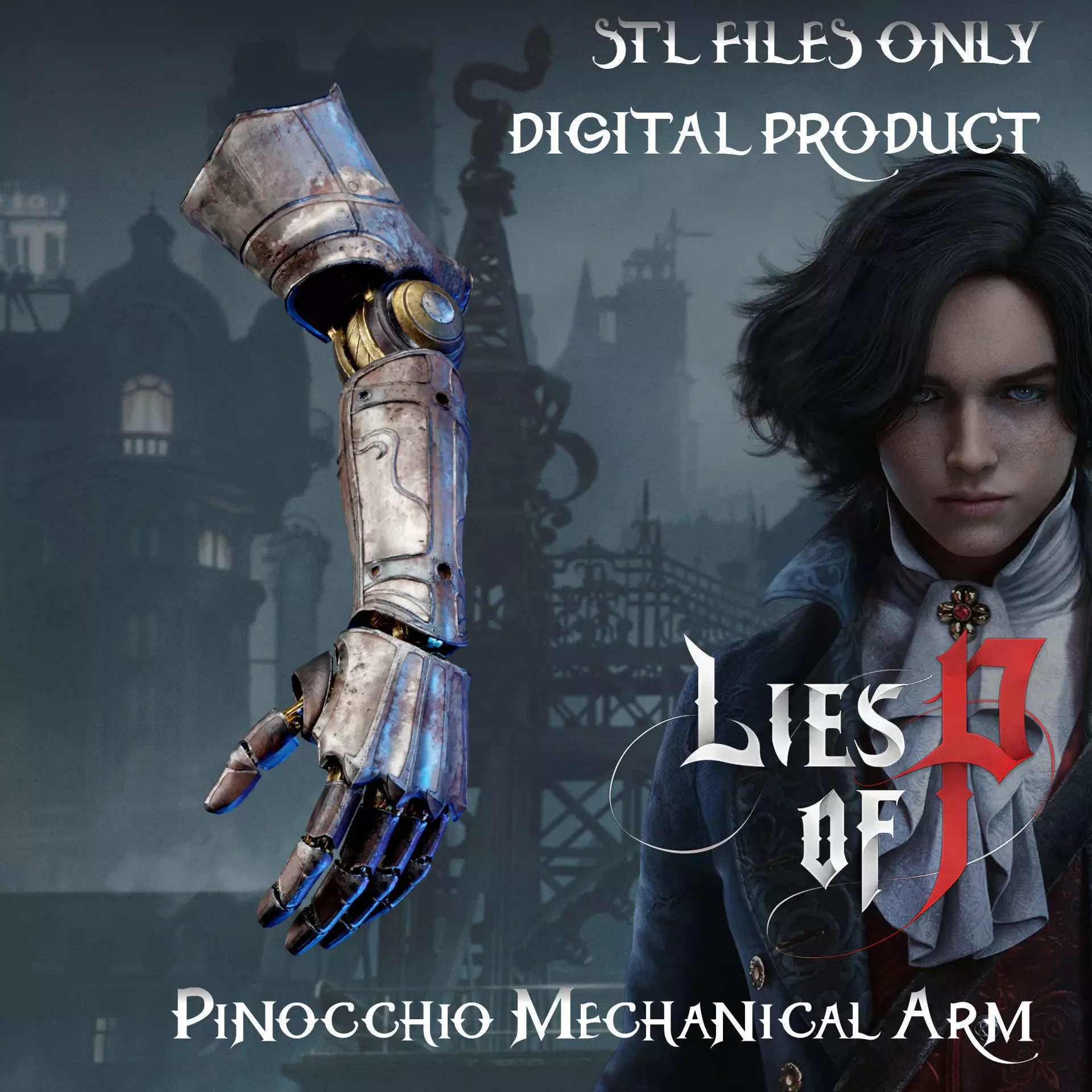 Ready to print Pinocchio Mechanical arm from Lies of P. A little challenge to print and assemble, but I try to make it comfortable as much as possible. Can be made movable at the elbow. Can be used for cosplay porpouses or for decoration.