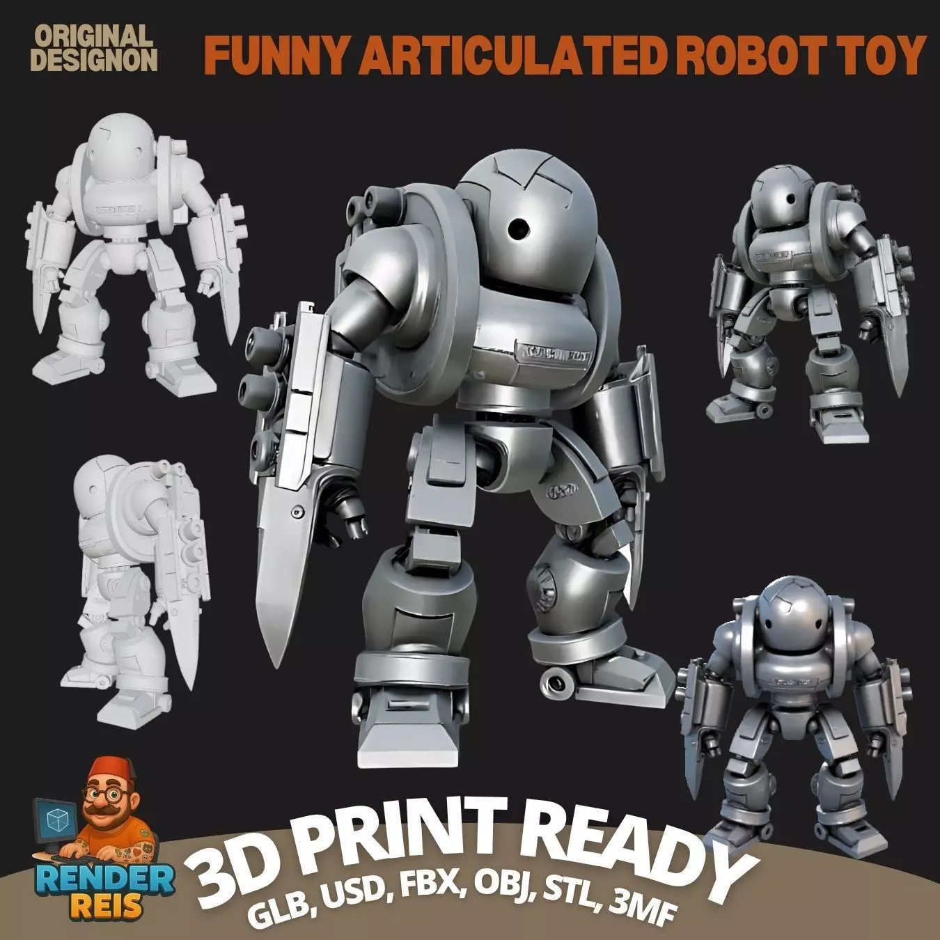 Description:Bring the strength and resilience of futuristic battlefield robots into your space with this solid 3D model! Featuring thick armor plates, powerful limbs, and potential weapon slots, this figure is ready to become a mechanical warrior through your 3D printer.