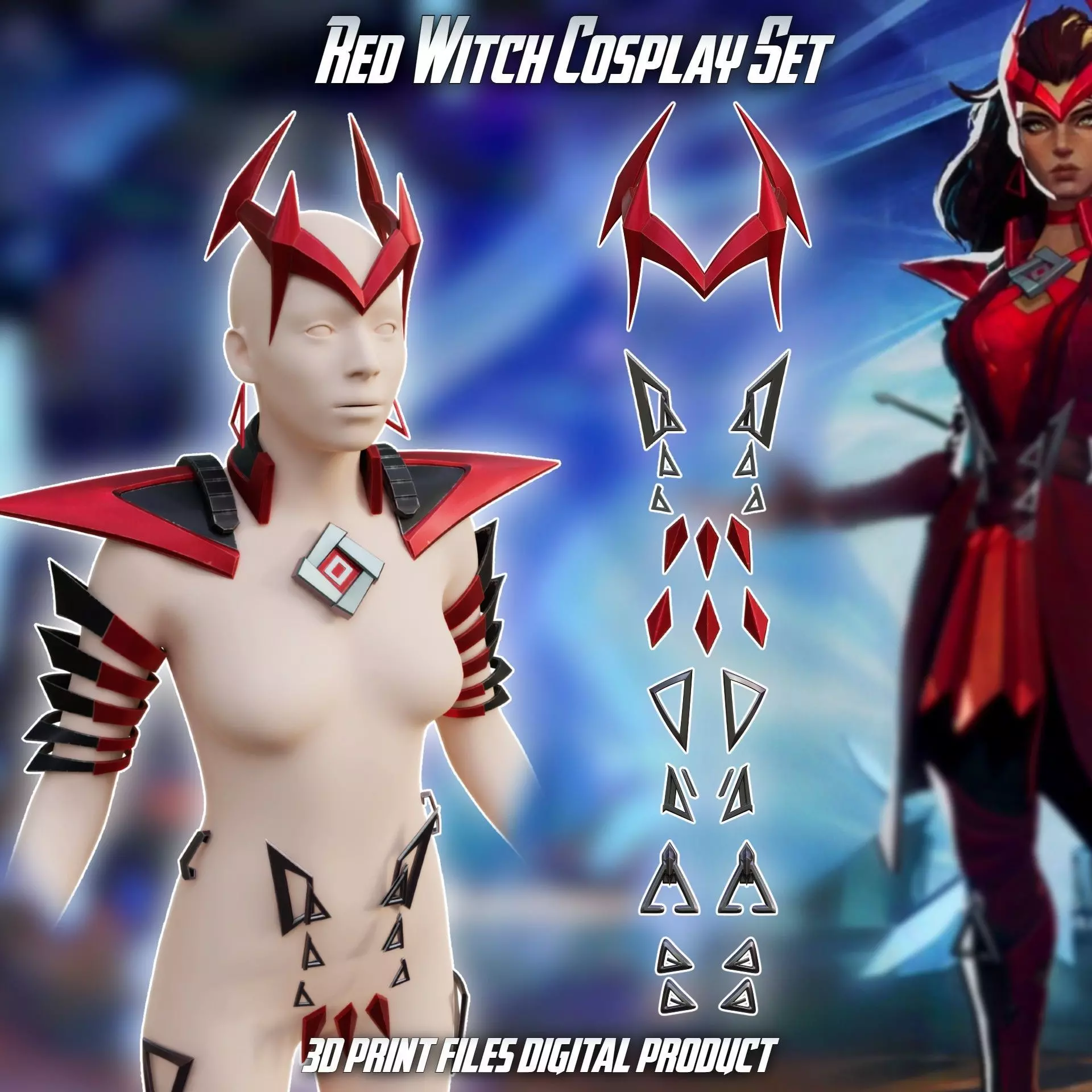 Red Witch Accessories Cosplay Set Marvel Rivals 3D print model