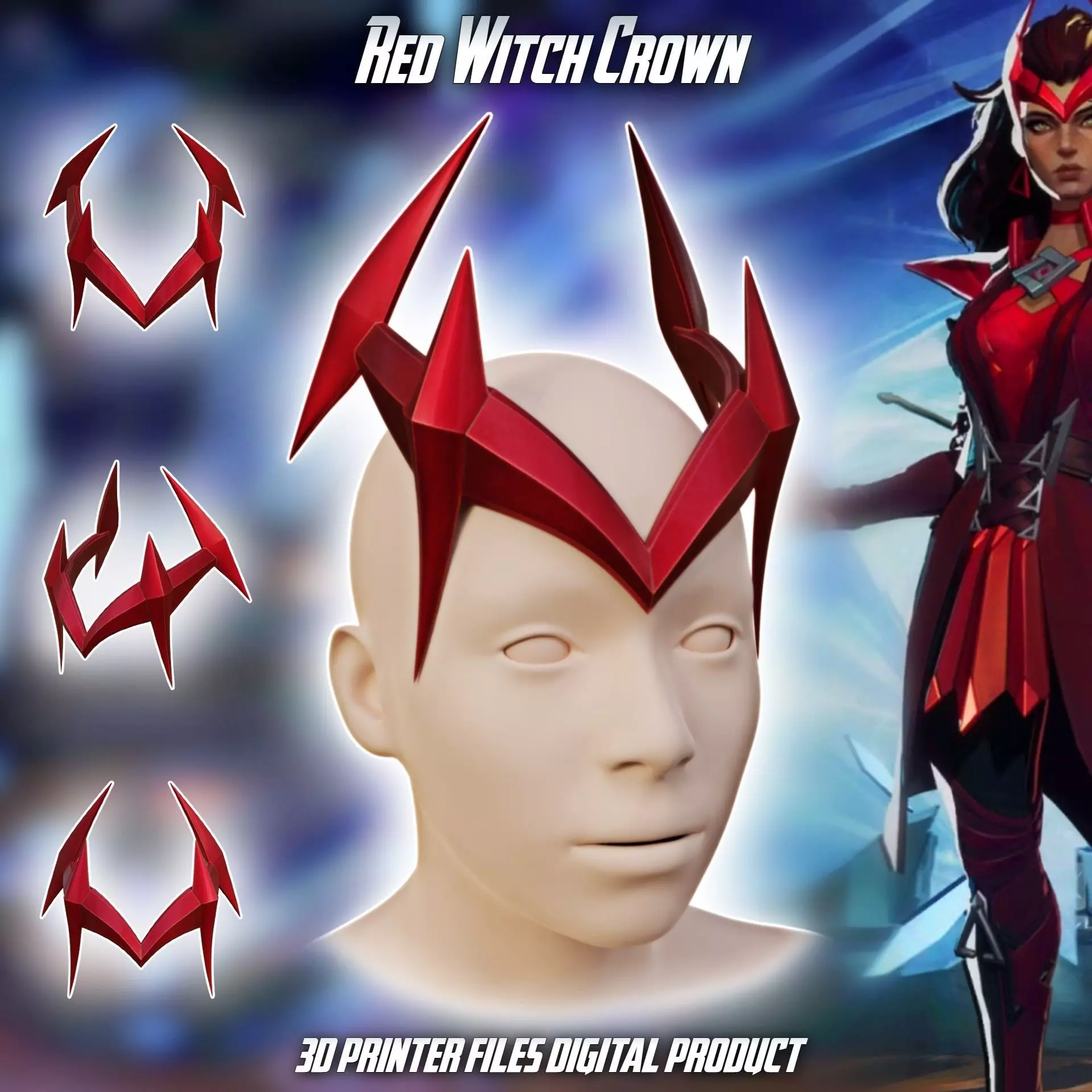 Files to print Red WItch Crown from Marvel Rivals. The supports required. Some parts need to be printed multiple times (file names contain the approximate quantity).Prepared for ENDER 3 v2 or similar 220x220x250mm size printer. Lots of division options for convenient printing. Designed for 55cm head circumference 165cm person.