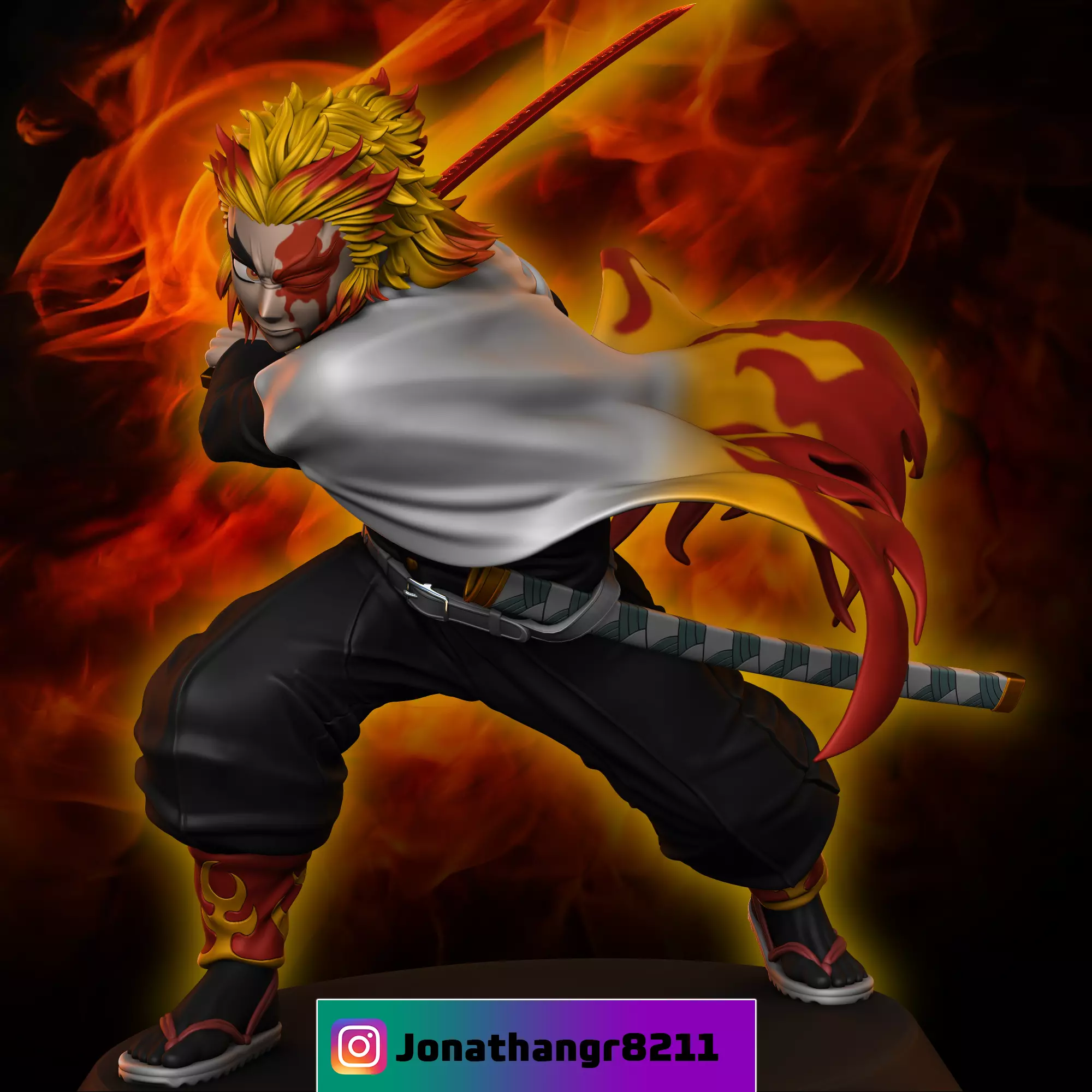 - Rengoku from the anime Demon Slayer is a 3D printable figure designed to capture the essence of a beloved anime character. It is created using ZBrush software and optimized for 3D printing technologies.