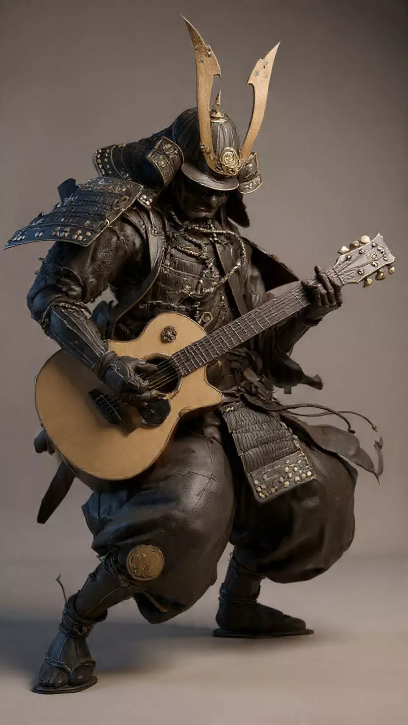 The Creation Story: I sculpted this model imagining a tired veteran sitting by the campfire after a long battle. I wanted to challenge the traditional concept of the samurai by replacing his weapon with a western acoustic guitar, creating a scene of anachronistic beauty. I spent hours refining the textures of the worn leather armor and the chipped metal of the kabuto helmet to show years of combat history. The pose was carefully crafted to look dynamic yet relaxed, as if he is playing a song for the fallen spirits. This is not just a statue; it is a story of finding peace in the middle of chaos.