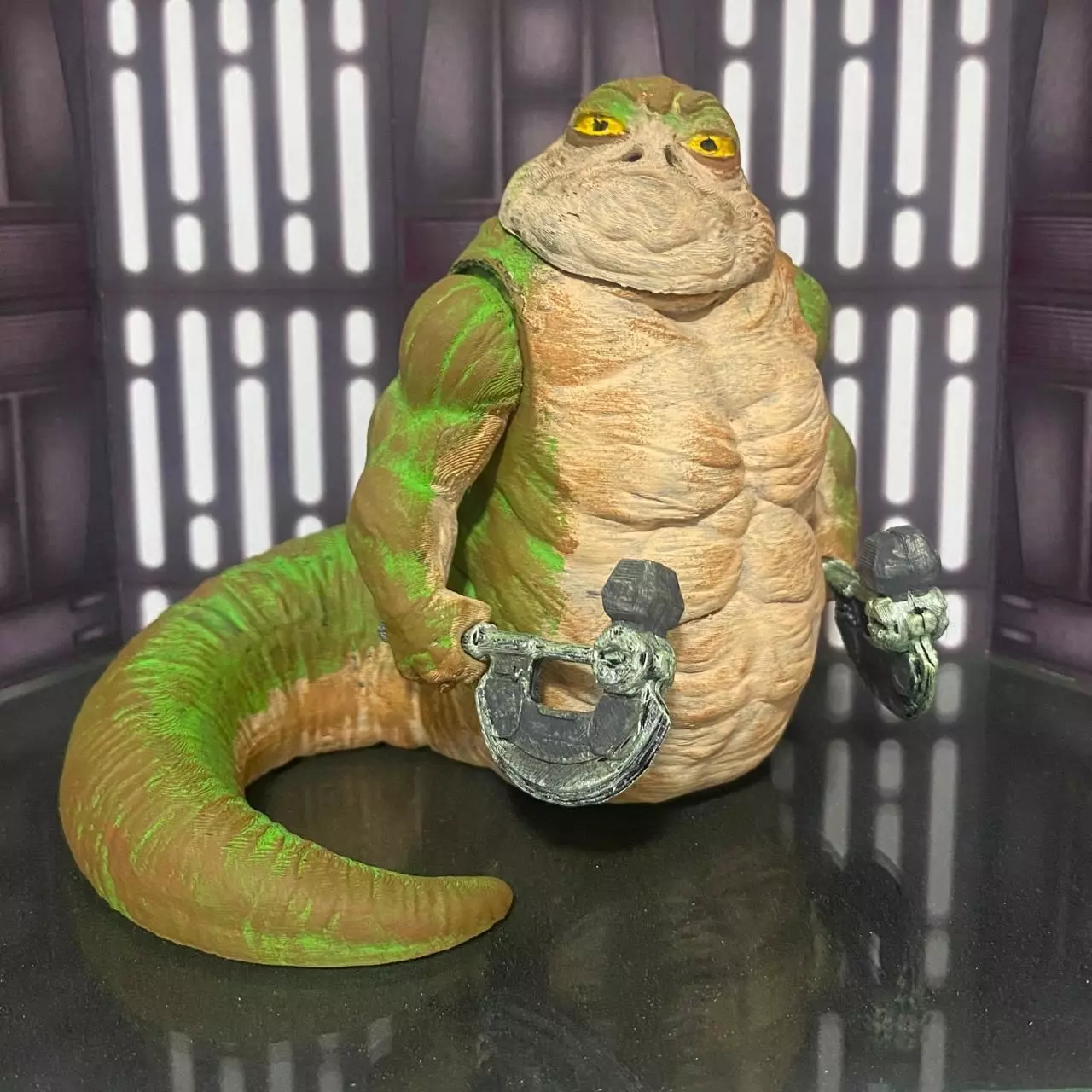 3D model descriptionA 3D model character inspired by Rotta The Hutt from Star Wars Mandalorian and Grogu, in the style of vintage Kenner toys.