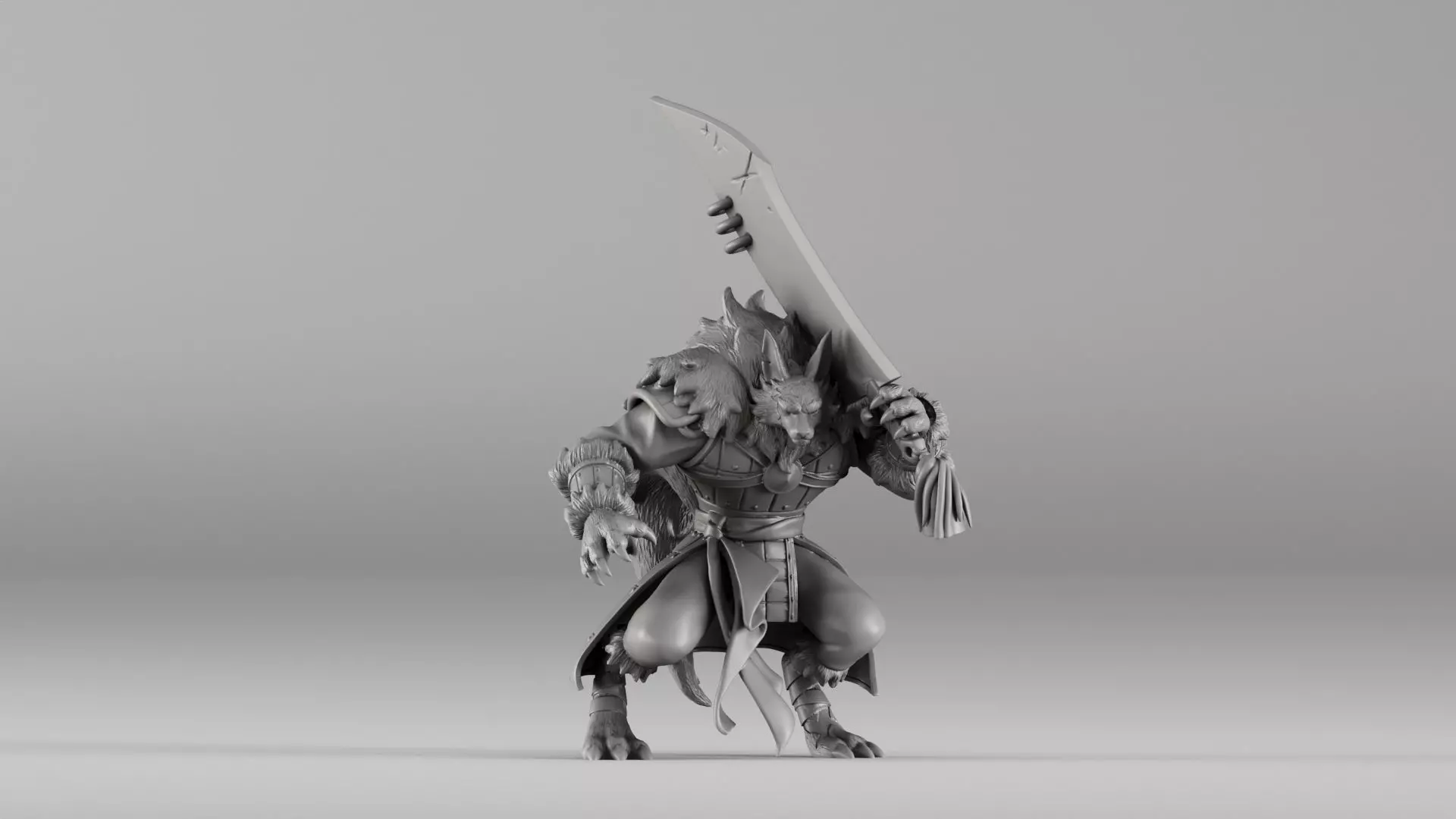 Dynamic 3D printable model of a crouching werewolf wielding an enormous blade. Designed with an emphasis on miniature-ready resolution, this fierce warrior is ideal for tabletop battles, painting, or collectible display. Scanned and optimized to maintain every detail of the sculpt.