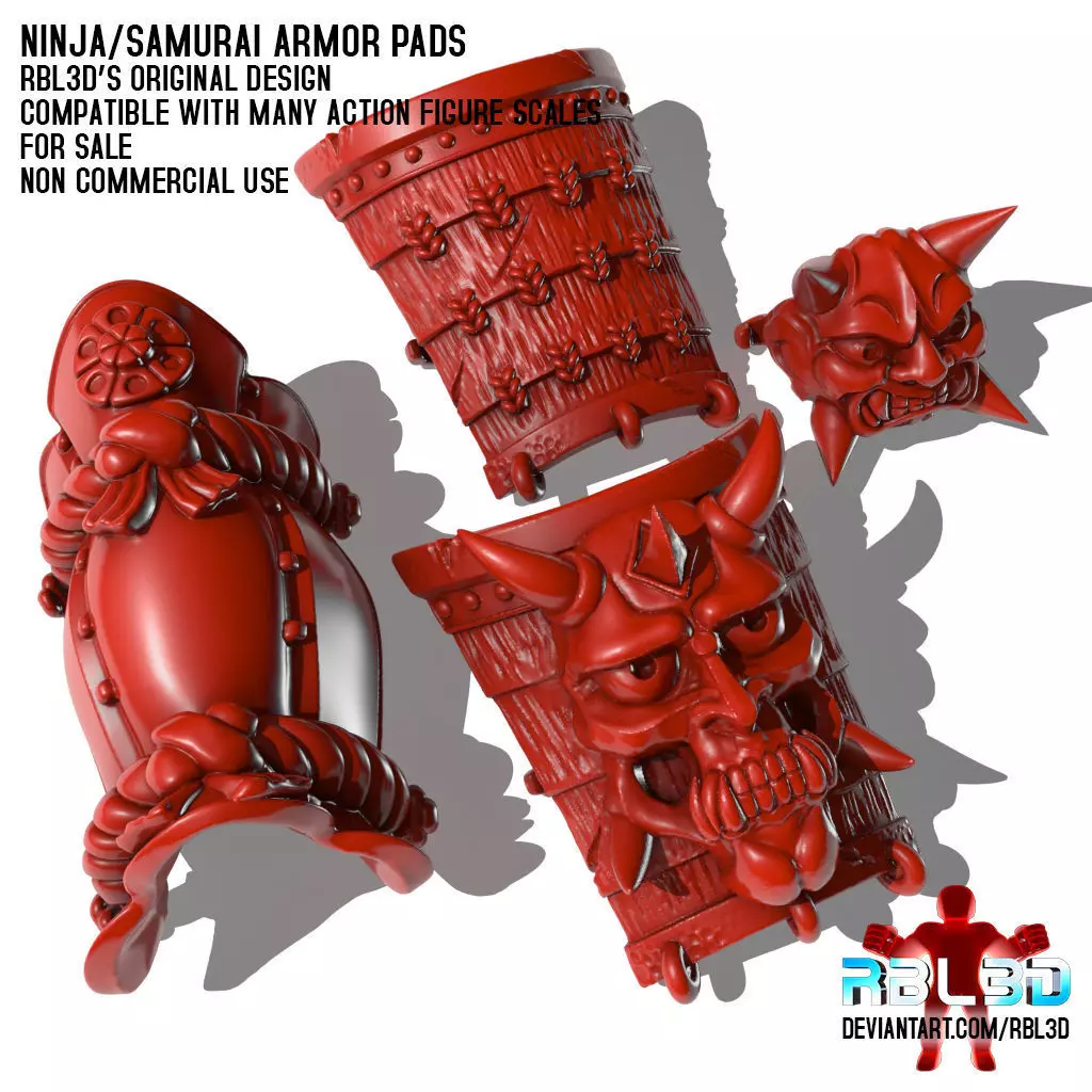 Models included: Shoulder pad (sode), shoulder pad oni version, Kagura mask knee/elbow pad and samurai shin guard (suneate).