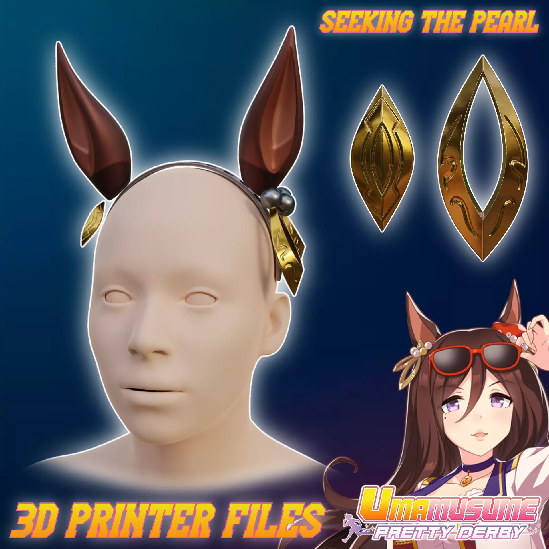 Files to print Seeking The Pearl Ears and Head Accessories from Umamusume: Pretty Derby. The supports required. Some parts need to be printed multiple times (file names contain the approximate quantity).Ready for ENDER 3 v2 or similar 220x220x250mm size printer. Many division options for convenient printing included. Designed for 55 cm head circumference. Headband included. 10x2mm magnets optional.