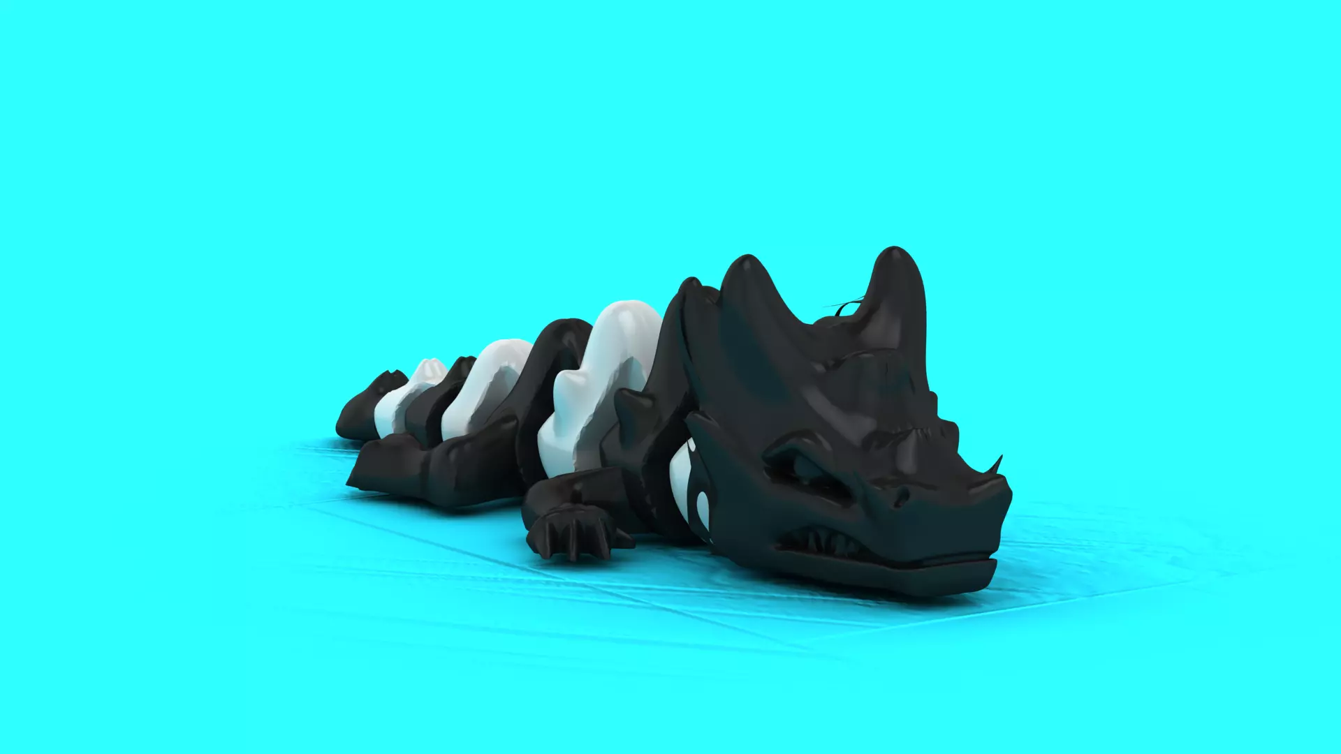 The Shadow Spine Dragon is a stylized fantasy creature designed with a bold, skeletal-inspired body and smooth, flowing forms. Its low, grounded pose combined with sharp facial details and segmented spine gives it a powerful yet collectible look.