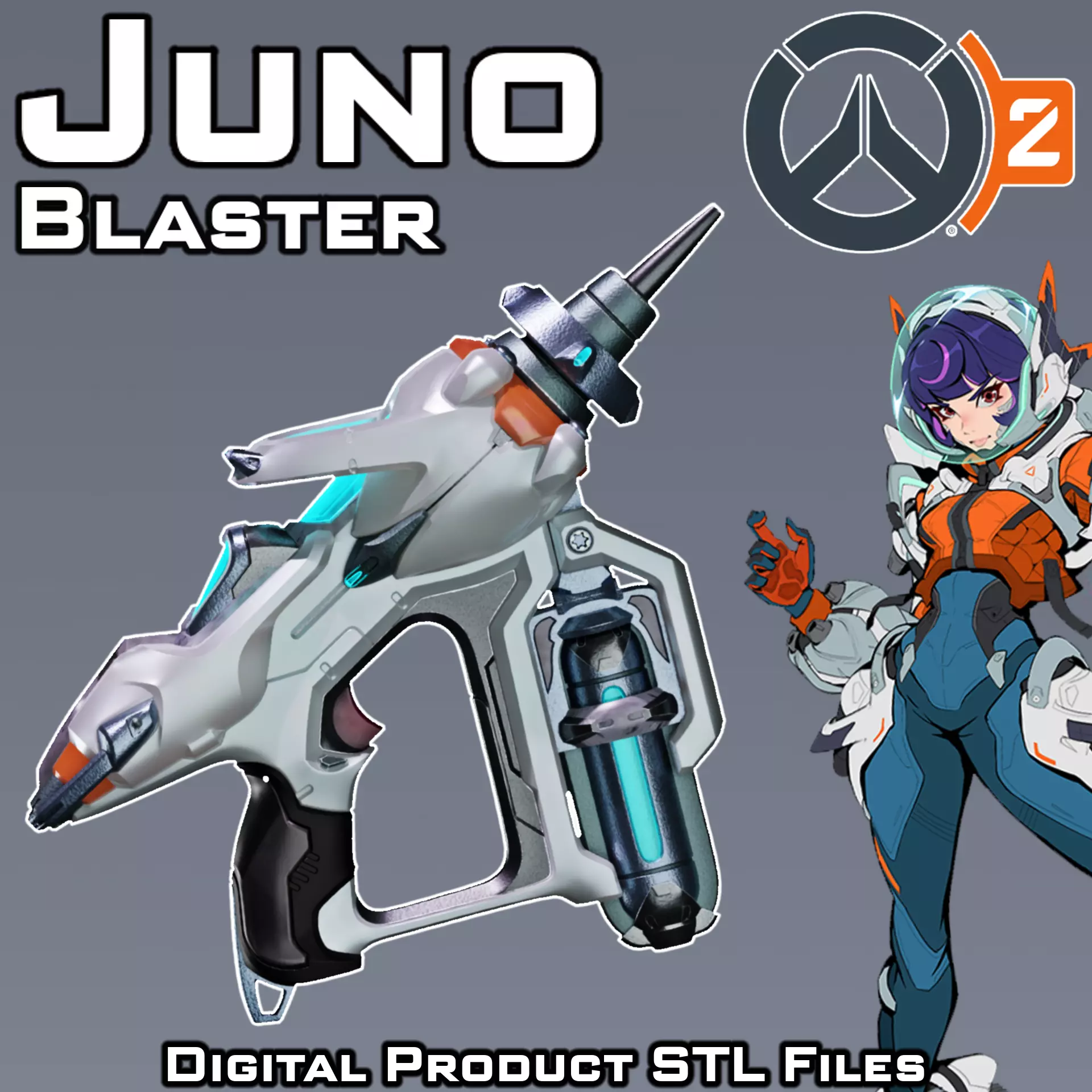 Ready to print Juno's Blaster from Overwatch 2. The supports required. Some parts need to be printed multiple times (file names contain the approximate quantity). Prepared for ENDER 3 v2 or similar 220x220x250mm size printer. Lots of division options for convenient printing. Required 9x2mm magnets for mag fixation.