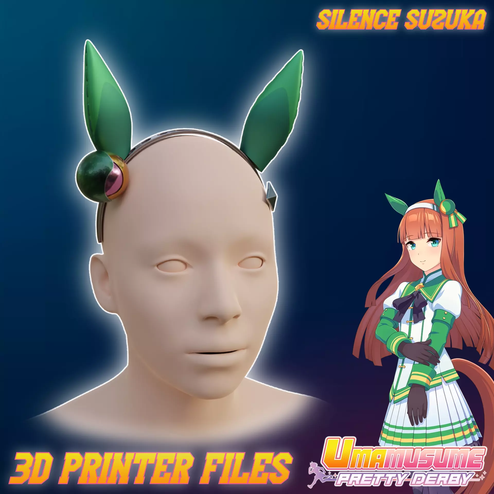 Files to print Silence Suzuka Cosplay Ears and HEad Accessories Umamusume: Pretty Derby. The supports required. Some parts need to be printed multiple times (file names contain the approximate quantity).Ready for ENDER 3 v2 or similar 220x220x250mm size printer. Many division options for convenient printing included. Designed for 55 cm head circumference. Headband included. 10x2mm magnets optional.