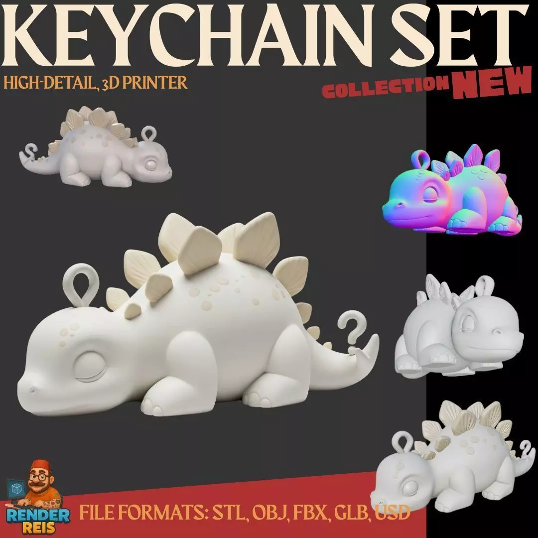 Sleeping Cute Stegosaurus 3D Printable Dinosaur Keychain Model 3D print model
