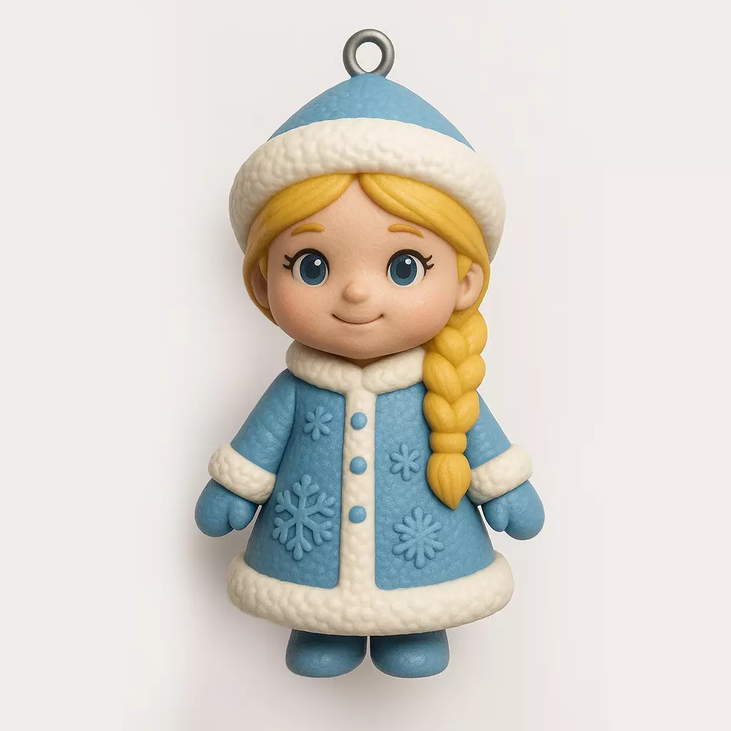A stylized winter girl with a long braid, warm coat and hat, designed as a hanging Christmas ornament. Soft rounded shapes and calm pose make the model easy to print and comfortable to paint with your own color scheme.