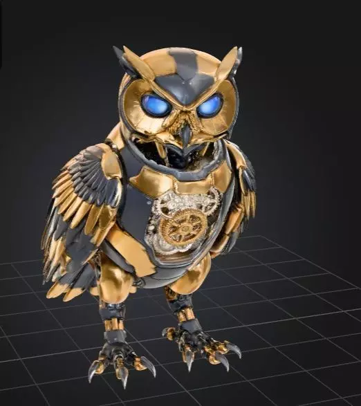 Clockwork Robotic Owl: A stunning steampunk-inspired owl featuring intricate mechanical gears and armor plates.