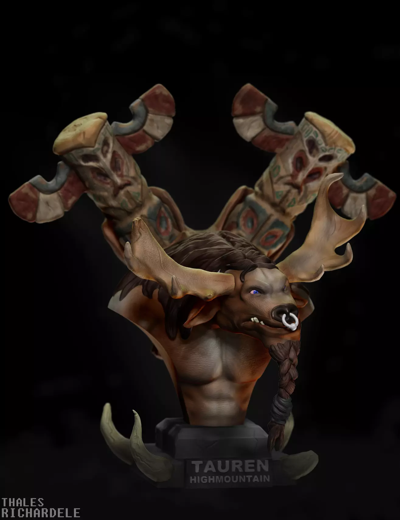 Hello guys, this is a model of a bust of the Tauren Hightmountain race from the World of Warcraft game, it is all prepared and cut for 3D printing. Hope you like it