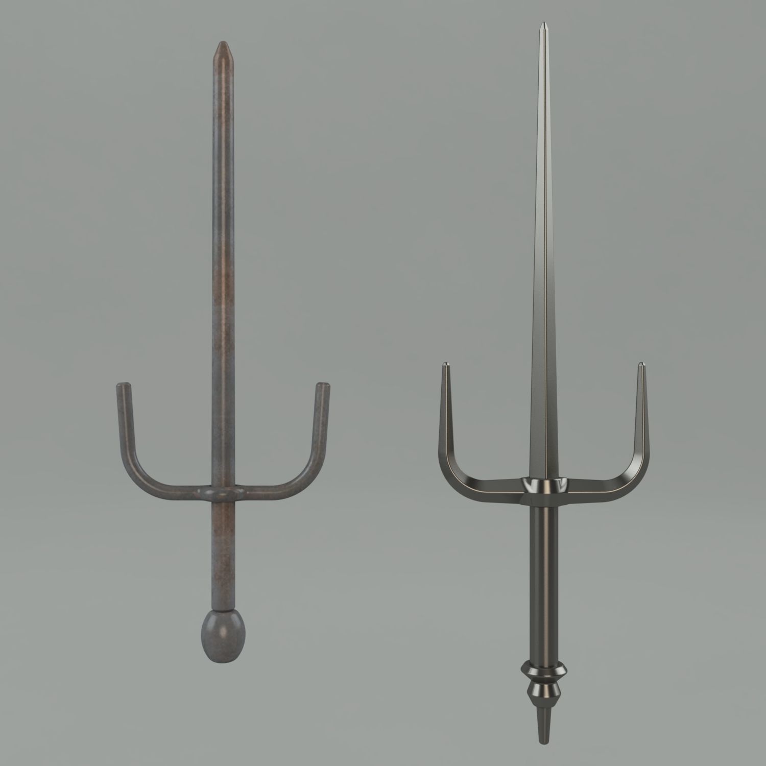 Raphael's sais 3D model set, Teenage Mutant Ninja Turtles (Muvie 1990 and Muvie 2014). The models can also be used for other ninja and fighting game projects. Default lenght of printed items - sai 1990 version - 460 mm, sai 2014 version - 535 mm.