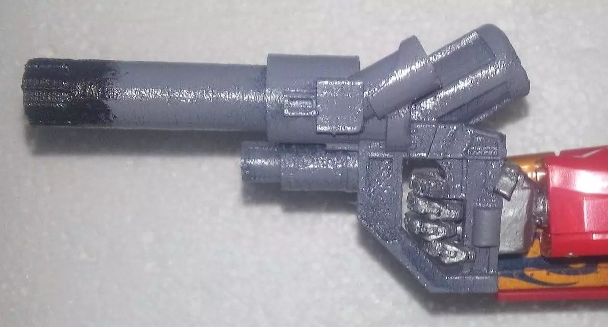 Optimus Prime Blaster modeled after the one from the MPM04 figure (wich is based on the blasters used by Prime on the Revenge of the Fallen movie). The big one is scaled and adapted for the MPM04 hand (it can be attached into the grip of any one thanks to the tabs on each side, just like the one that comes with the figure) or any other articulated hand of a Prime Leader Class figure; the little one has been downsized for Voyager Class (tested on Studio Series and Evasion Mode), replacing the handle of the weapon for a 5 mm peg (since most Voyager Class figures has a closed fist with that opening).
