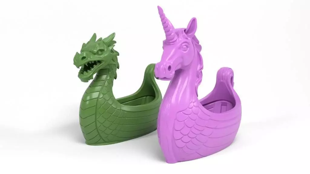 The Unicorn and Dragon toy boats are designed to captivate young imaginations through mythical creatures paired with functionality of small boats. The whimsical designs are both fantastical and playful, encouraging creative play among children.