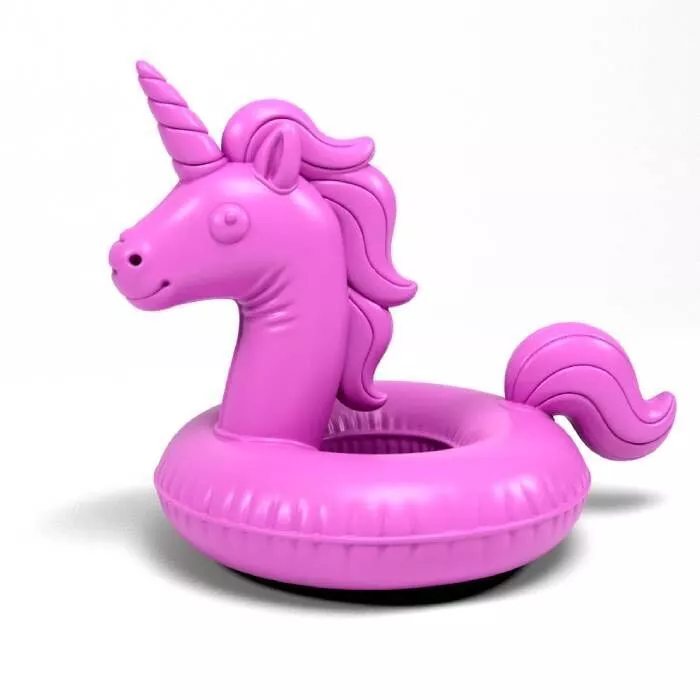 The unicorn floatie can serve as a decorative element for themed parties, toy collections, or as an artistic model for illustrators and creatives. It could also be a concept demonstration for a life-sized inflatable float design.