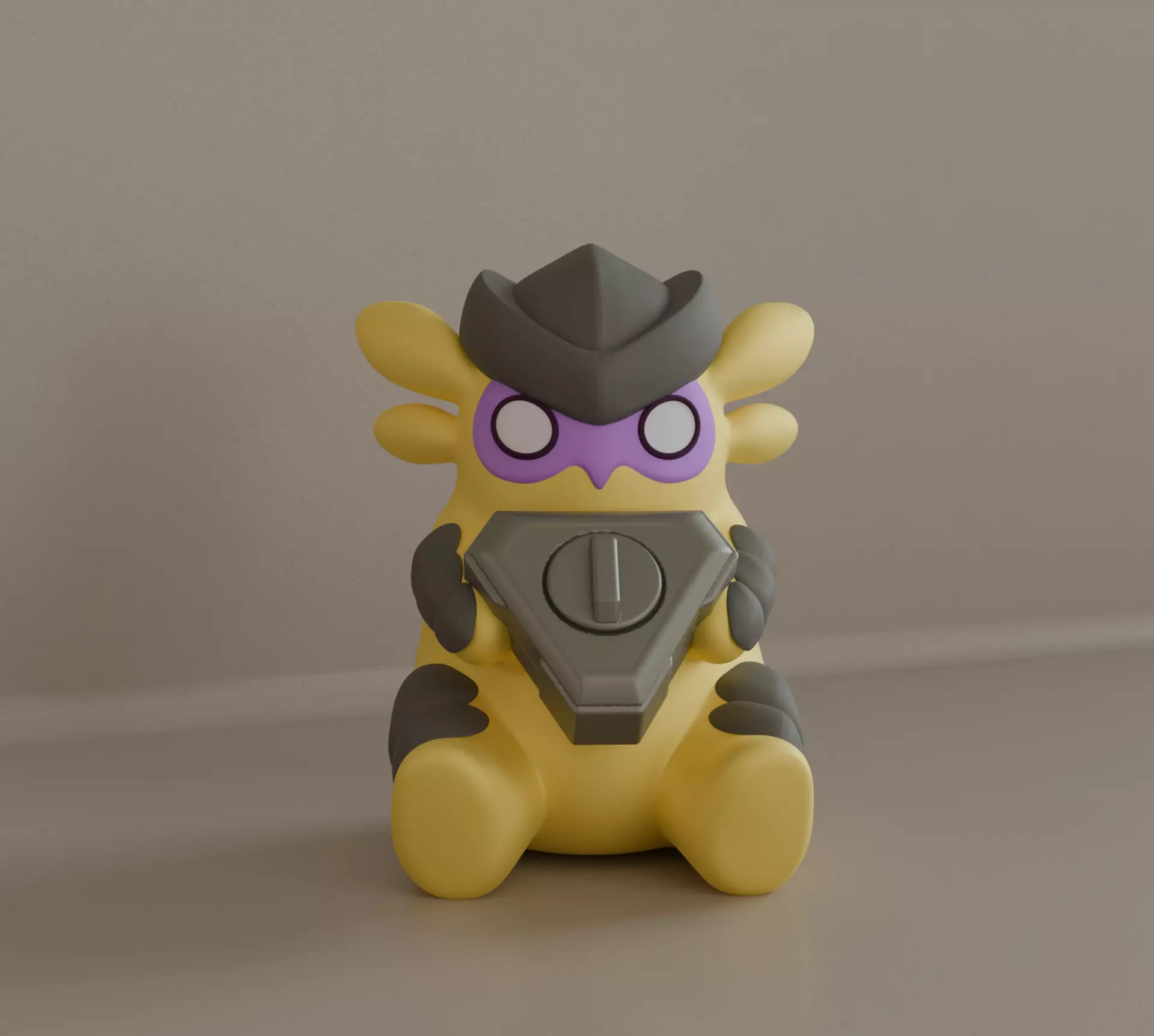 Description:This is a fan-made 3D model of Wingman, the adorable companion of Gekko from Valorant, reimagined in a cute seated pose while holding the familiar Spike. We gave it a fun, charming design that still keeps the spirit of the game alive. It's perfect for Valorant fans, figure collectors, or anyone looking for a stylish and playful desk decoration with a gamer vibe.