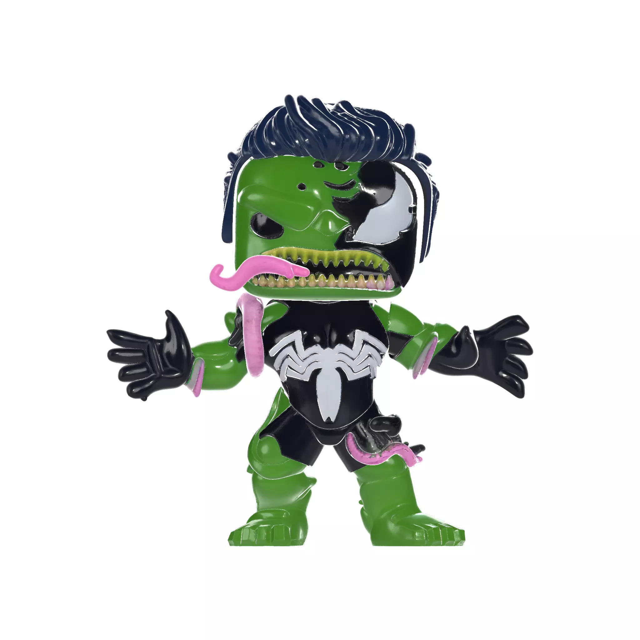 Unleash the wild fusion of reptilian power and alien symbiosis with this unique stylized figurine! Featuring a bold design that blends monstrous muscle, sharp teeth, coiled tongue, and asymmetrical armor, this collectible merges science fiction and fantasy in a playful yet fierce stance. The exaggerated features and vibrant contrast of green, black, and pink make it an eye-catching piece for any toy or 3D print enthusiast.
