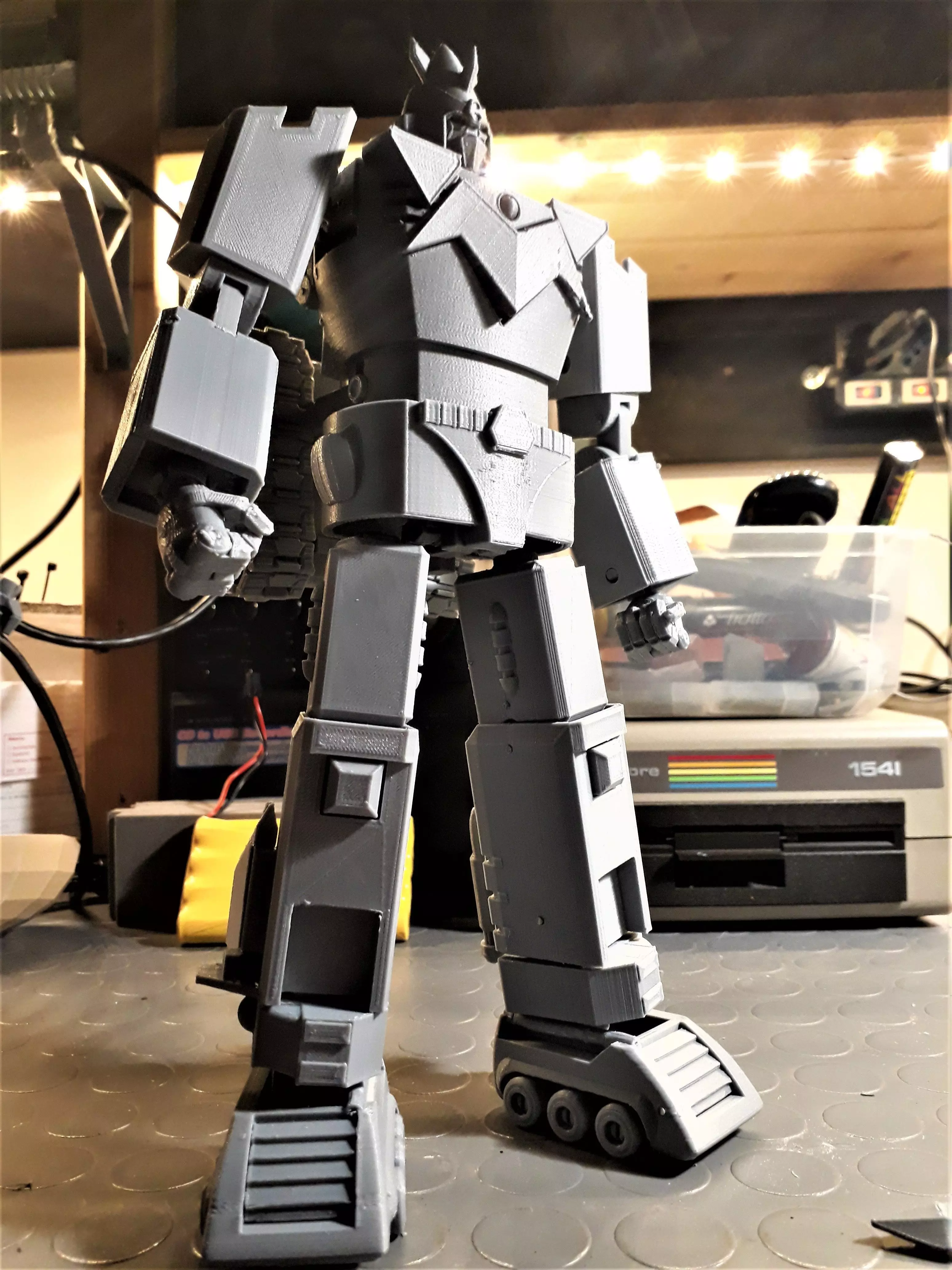 Here is an adaptation inspired by the GX-31V model.Consisting of five convertible vehicles.The model in robot mode is about 30 cm high, each vehicle is composed of several pieces to be assembled, all interlocking in gunpla style.I made some updates to the transformation, and to the joints of the robot.The legs are now telescopic, in airplane mode it will be more solid and the legs will remain firm.The hips can be pulled down, to allow greater posability of the legs.The hands are now hiding inside the arms, in this way no part will have to be replaced to transform itThe breastplate can be dismantled to join the blade and form the sword. (only weapon made)The tank tracks are functional, like the lander wheels.