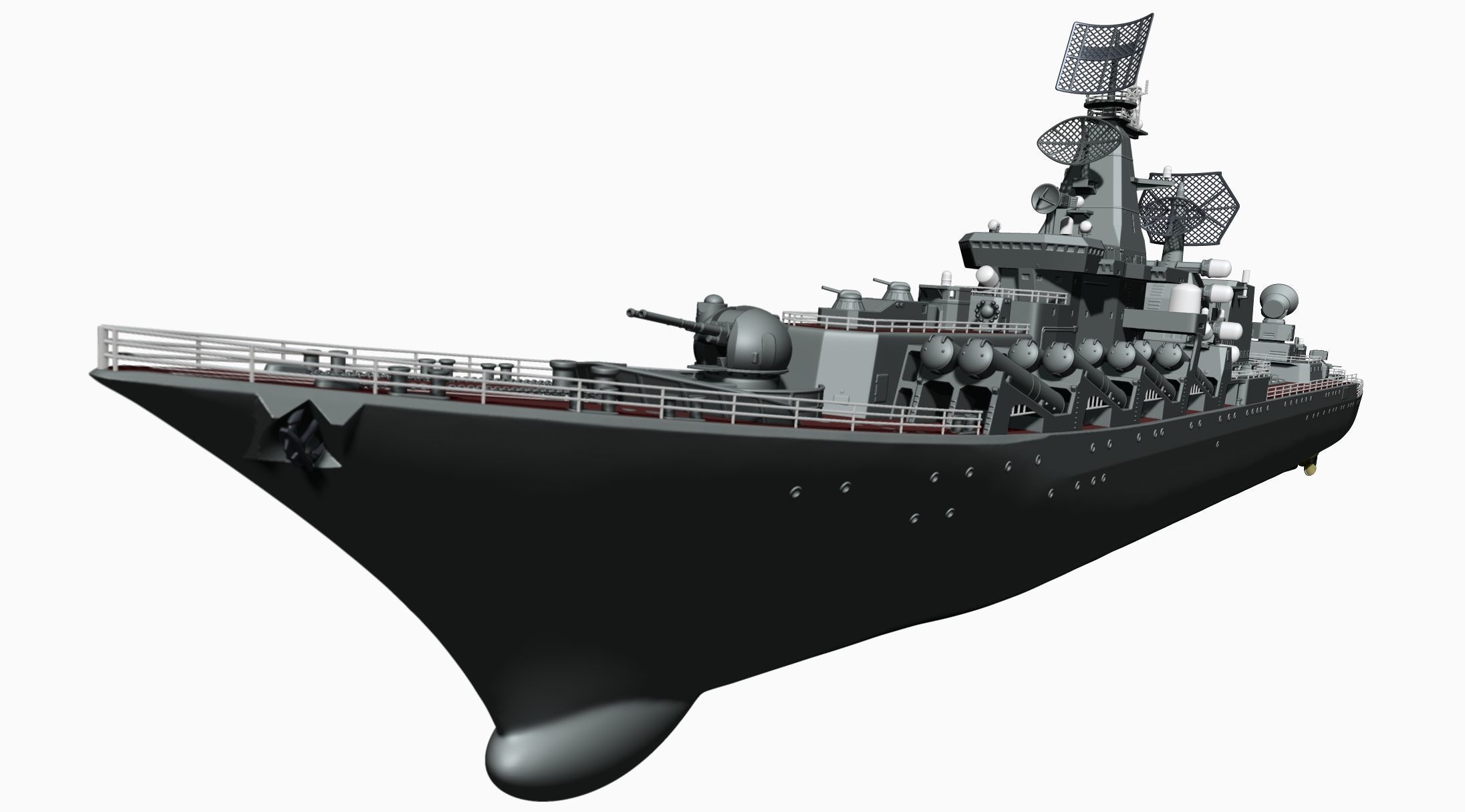 Warship model for 3d printingMoskva, formerly Slava, was a guided missile cruiser of the Russian Navy. Commissioned in 1983, she was the lead ship of the Project 1164 Atlant class, named after the city of Moscow. With a crew of 510, Moskva was the flagship of the Black Sea Fleet and the most powerful warship in the region.The cruiser was deployed during conflicts in Georgia (2008), Crimea (2014), and Syria (2015). She led the naval assault during the 2022 Russian invasion of Ukraine, from February 2022 until her sinking on 14 April 2022.Scale: 1:200 (Length 93cm, Beam 11cm)Scale: 1:150 (Length 125cm, Beam 14cm)Scale: 1:100 (Length 187cm, Beam 21cm)Scale: 1:75 (Length 249cm, Beam 28cm)Scale: 1:50 (Length 373cm, Beam 42cm)The model includes 118 partsSome small details should be printed at slow speeds or resin 3d print for best qualityIf you need to change the size, please contact us