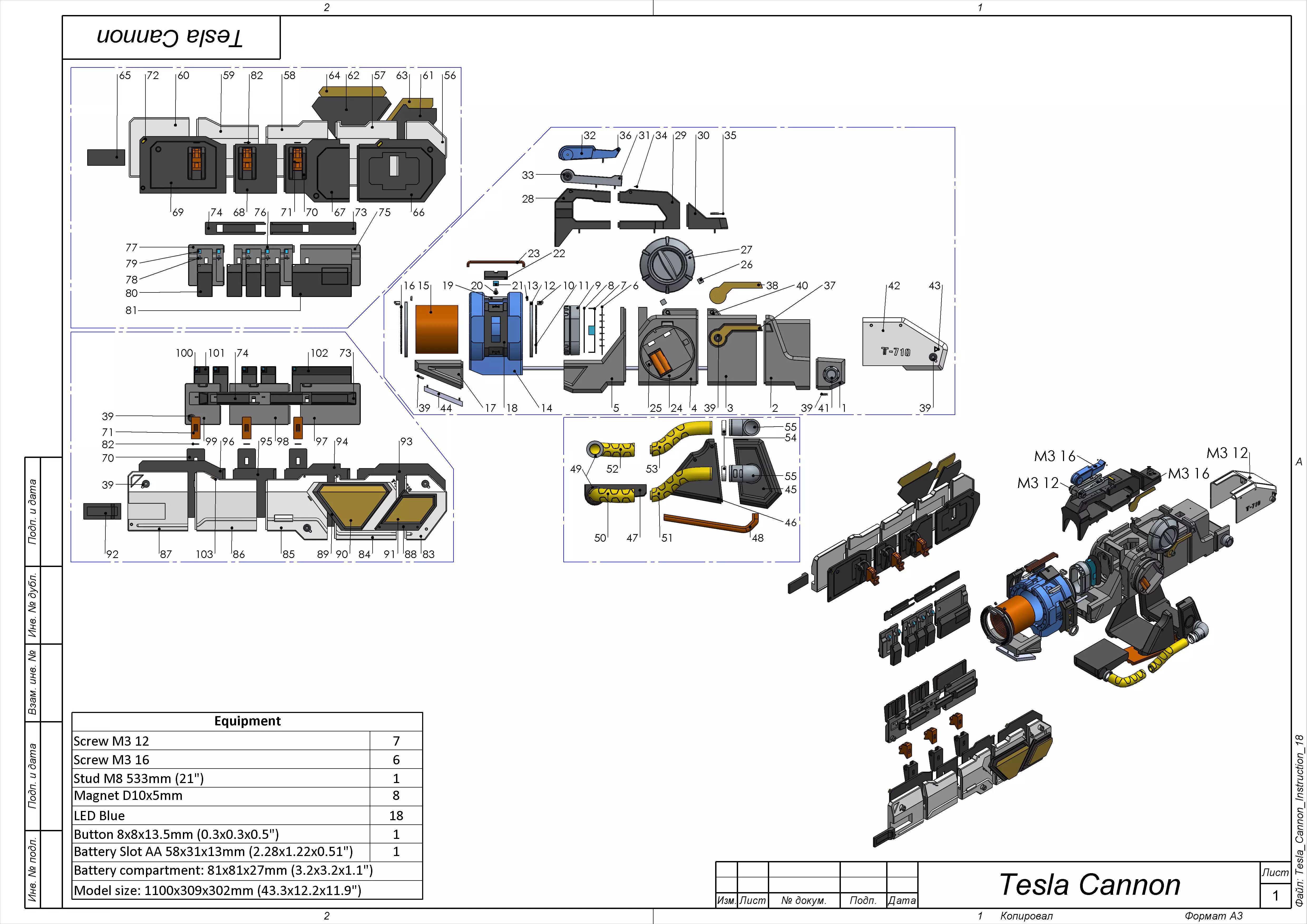 - 1 CAD file of Winston Tesla Cannon model - STEP format.