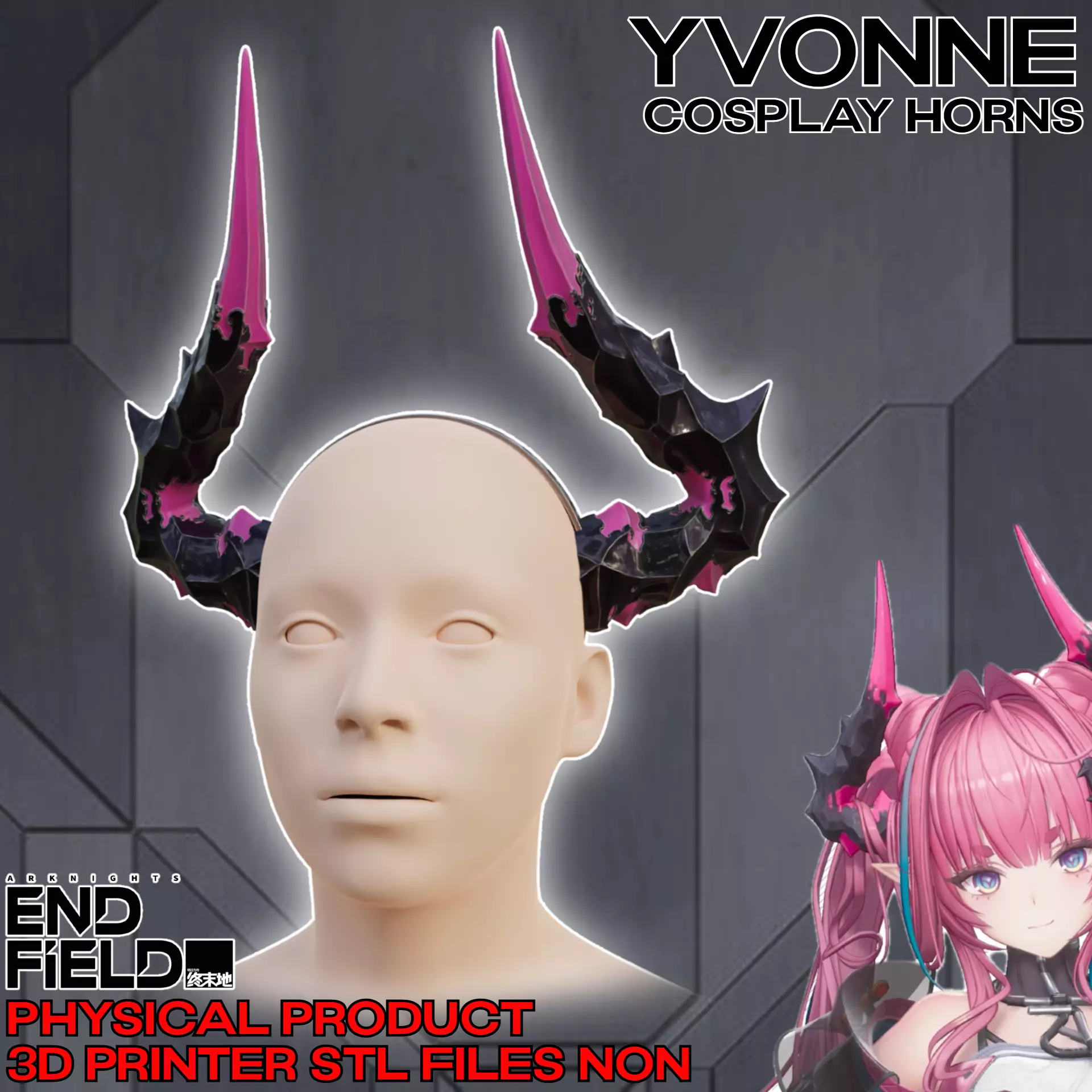 Files to print Yvonne Cosplay Horns from Arknights: Endfield. The supports required. Some parts need to be printed multiple times (file names contain the approximate quantity).Ready for ENDER 3 v2 or similar 220x220x250mm size printer. Many division options for convenient printing included. Designed for 165cm person 55cm head circumference. Optional 10x2mm magnets mount. Multi color print option included.