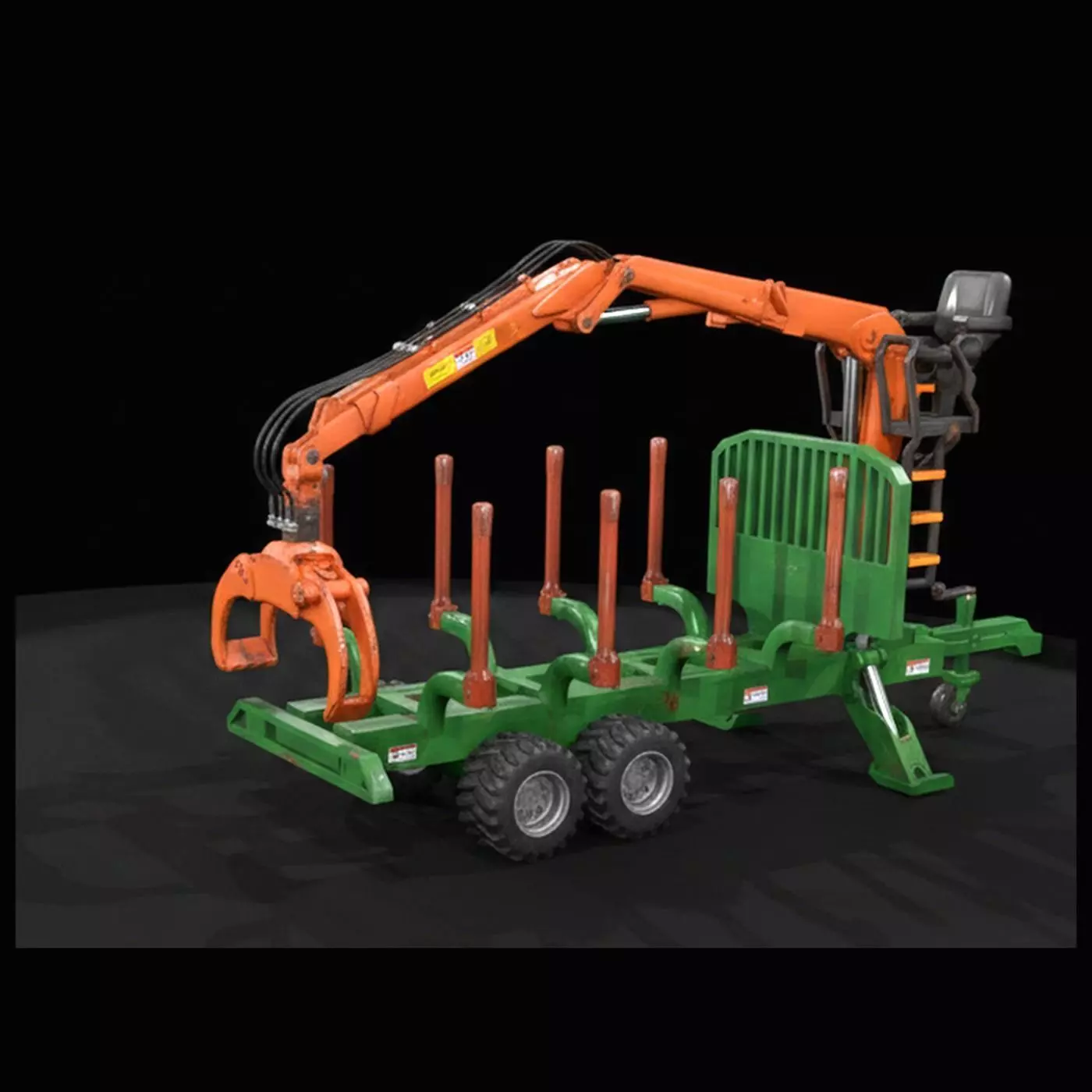 A trailer-mounted timber loader composed of a chassis with dual-axle off-road wheels, several vertical stake posts for carrying logs, an articulated hydraulic boom with multiple telescoping/hinged segments, and a mechanical grapple (log grab) attached to the boom tip. A ladder and operator stand / small protected seating area are present at the rear of the trailer. Miniature Reality makes practical, print-ready scenery, vehicles, and props so layouts, dioramas, and tabletop scenes can feel full of life without forcing every item to be a centerpiece purchase. Includes the HO 1:87 Scale STL variant shown in this listing.