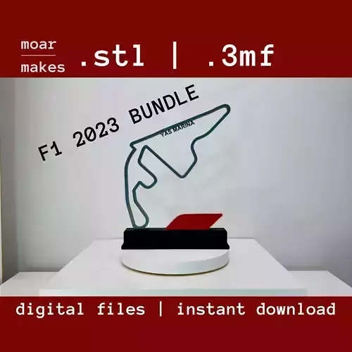 A digital collection of 3D models (.stl files) for all 23 F1 race tracks.Files compatible with various 3D printing software.Detailed instructions for printing and assembly.