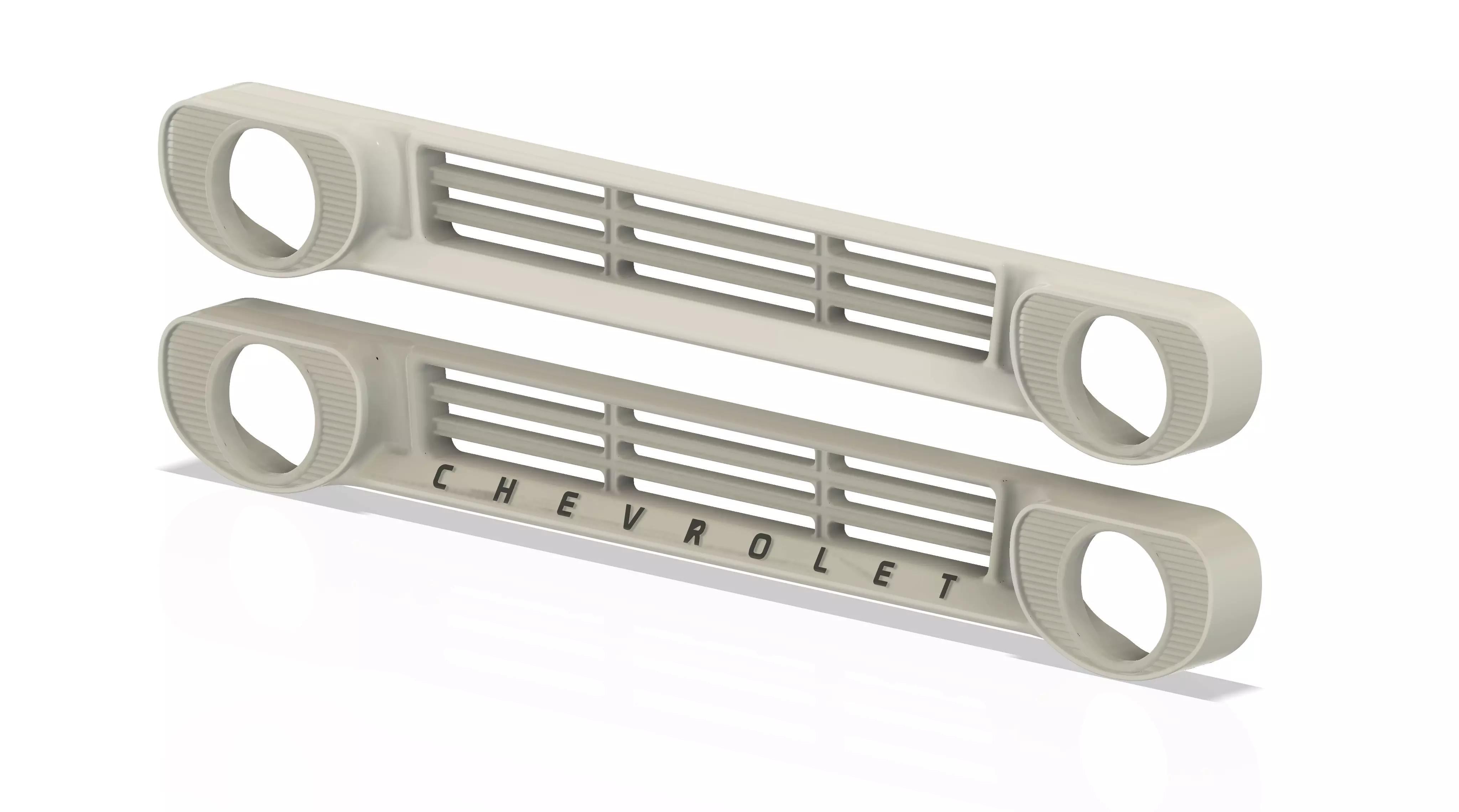A front grille to replace on several models kits of the C10. Premade the model is 71,2 mm long. Measure the original grille and scale the model to fit your project.