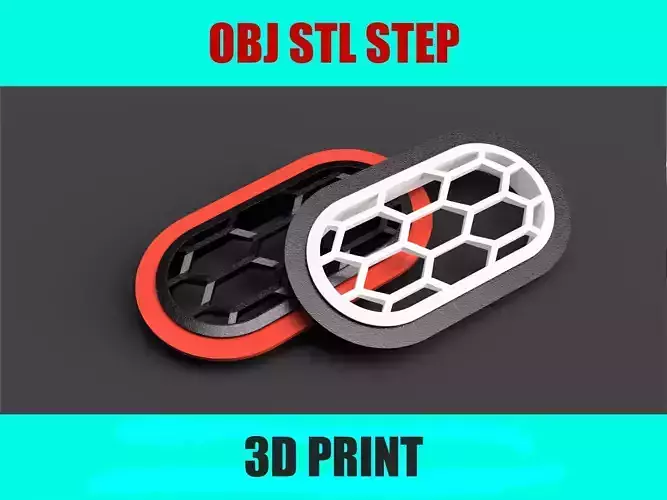 Features:Design: Honeycomb grill structure for optimal ventilation, with a template and counterplate for easy installation.Dimensions: Outer size 164.6 x 82 mm, opening 158.6 x 76 mm.Manufacturing: Optimized for 3D printing (STL, OBJ, STEP files included).Installation: Attach the template, drill two 76 mm holes, manually remove the bridge for an oval cutout.