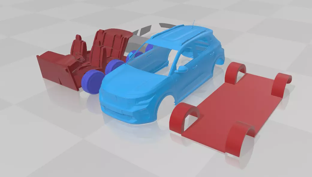 This STL model set features a fully separable 3D printable version of the 2024 Citroen e-C3, designed for enthusiasts and collectors. The modern electric hatchback is carefully detailed, with individual parts optimized for easy printing and assembly. Ideal for those looking to create a scale model with realistic components.