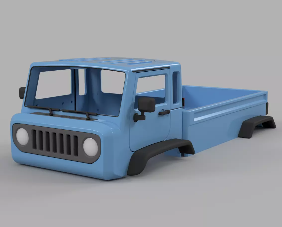 With high amounts of detail and shaping, the body is made to look as realistic as possible, and is designed for the standard 313mm or 12.3in wheelbase of 1/10 scale RC crawlers. However it can be printed without the bed for custom wheelbases and builds. Please keep in mind an FDM printer with a build volume of at the very least 185*185*145 is required.