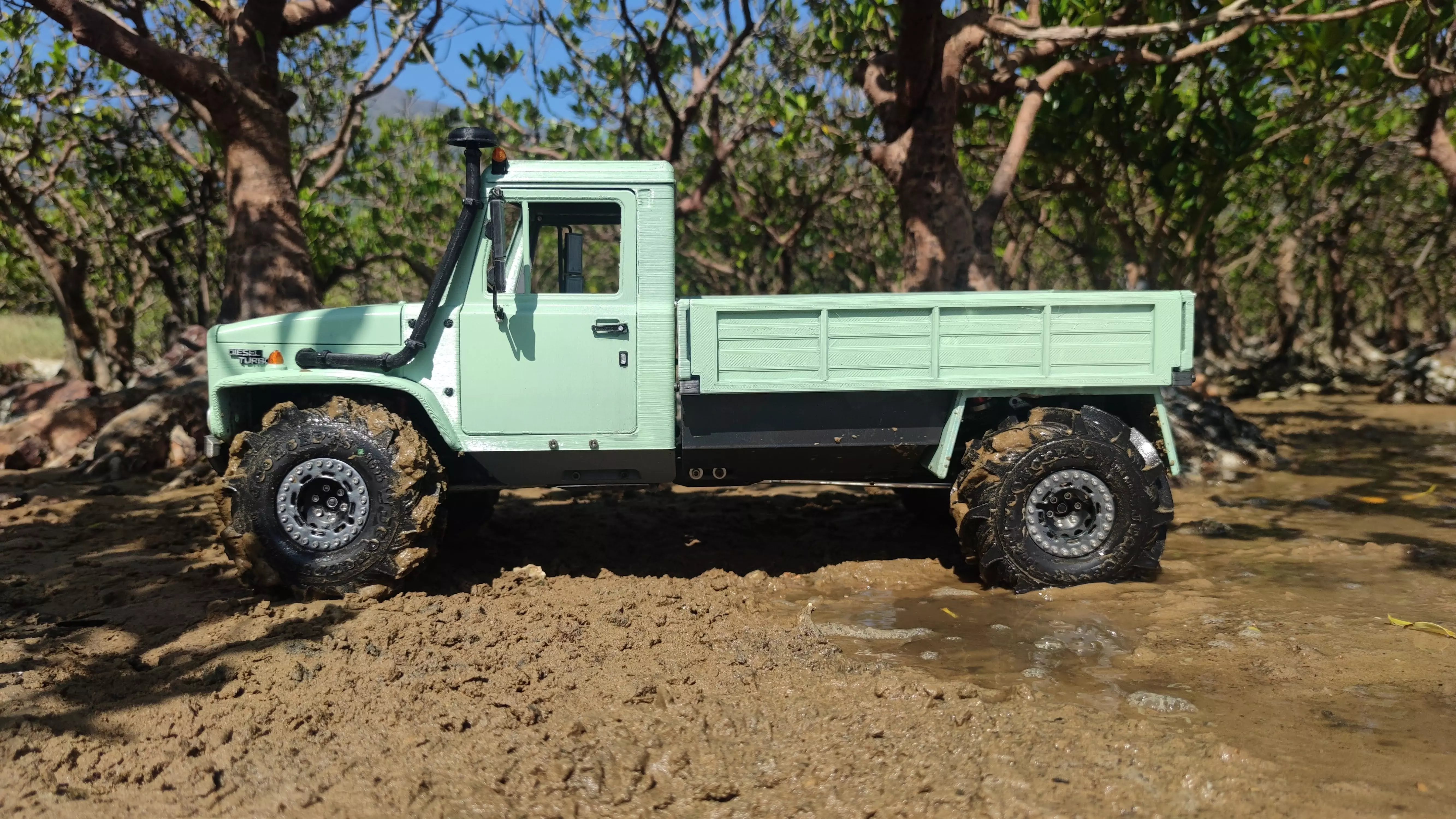 The G3308 sideboard flatbed is an addon attachment designed specifically for the G3308 “Adventurer” truck cab (the truck cab is sold separately). It gives the truck a more agricultural look, and was initially designed to work with a 420mm wheelbase. However a shorter or longer wheelbase can also be used to match. (see the included images for different wheelbases). If you do plan to use this bed on a shorter wheelbase, please note that the fender and “Rock Shield” mounts will not fit. However, standard non “Rock Shield” mounts are included and designed for use with the Axial SCX10 iii platform. 120mm and 125mm tyres can also be used with the included fenders, but expect some rubbing at full articulation.