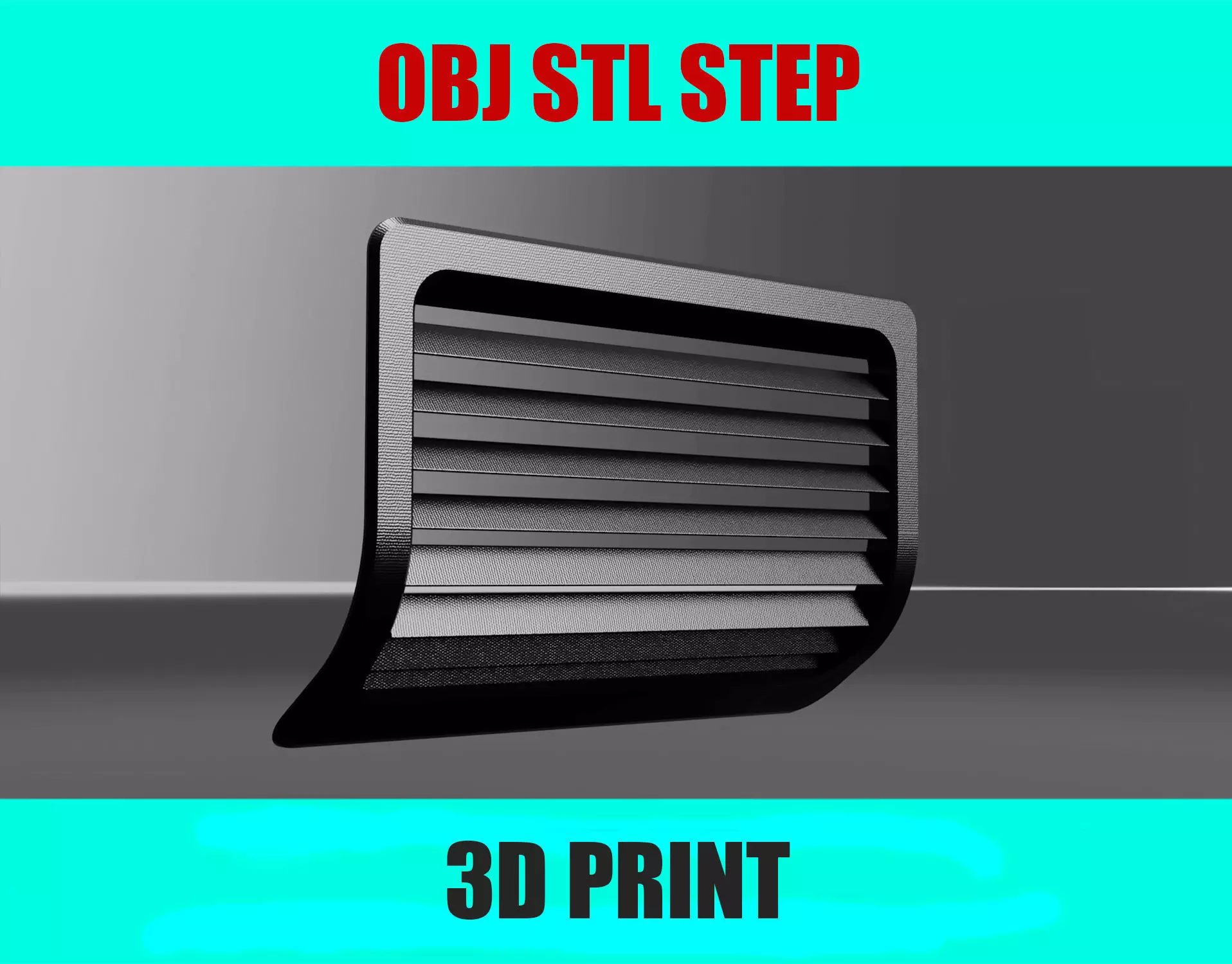 Features:Design: Louvered grill structure for optimal ventilation, with a curved shape.Manufacturing: Optimized for 3D printing (STL, OBJ, STEP files included).Installation: Requires custom fitting and drilling based on your bumper's curve.