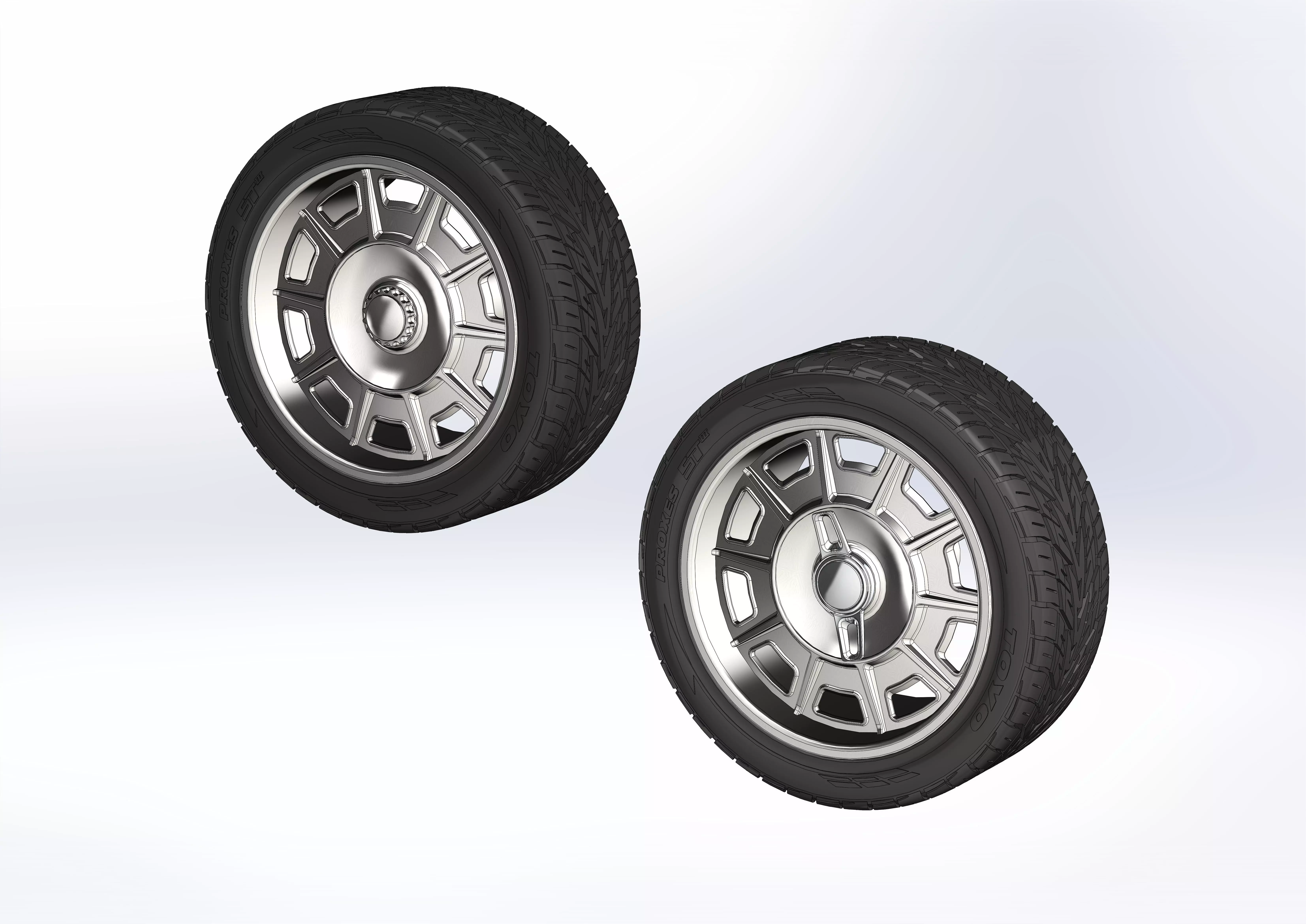 3D-printable wheels (rims and tyres separately) for your scale model . Rims style - Schott с10 22x10.5; Tyres - 285/40 R22 with a detailed tire tread patternWheel rims are presented with two variants of decorative caps