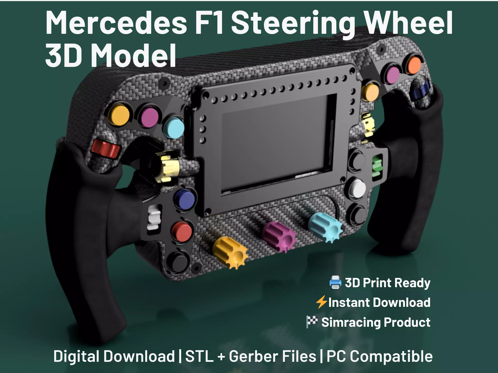 Build your very own Mercedes F1 steering wheel with this ultra-detallied 3D model perfect for simracing drivers looking for a realistic experience. Includes everything you need to print and assemble your pro-level wheel!