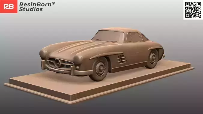 High-detail 3D model of the legendary Mercedes-Benz 300 SL Coupé (W198), famously known as the Gullwing due to its iconic upward-opening doors. This digital sculpture faithfully captures the groundbreaking design and elegant curves that defined the sports car of the 1950s.