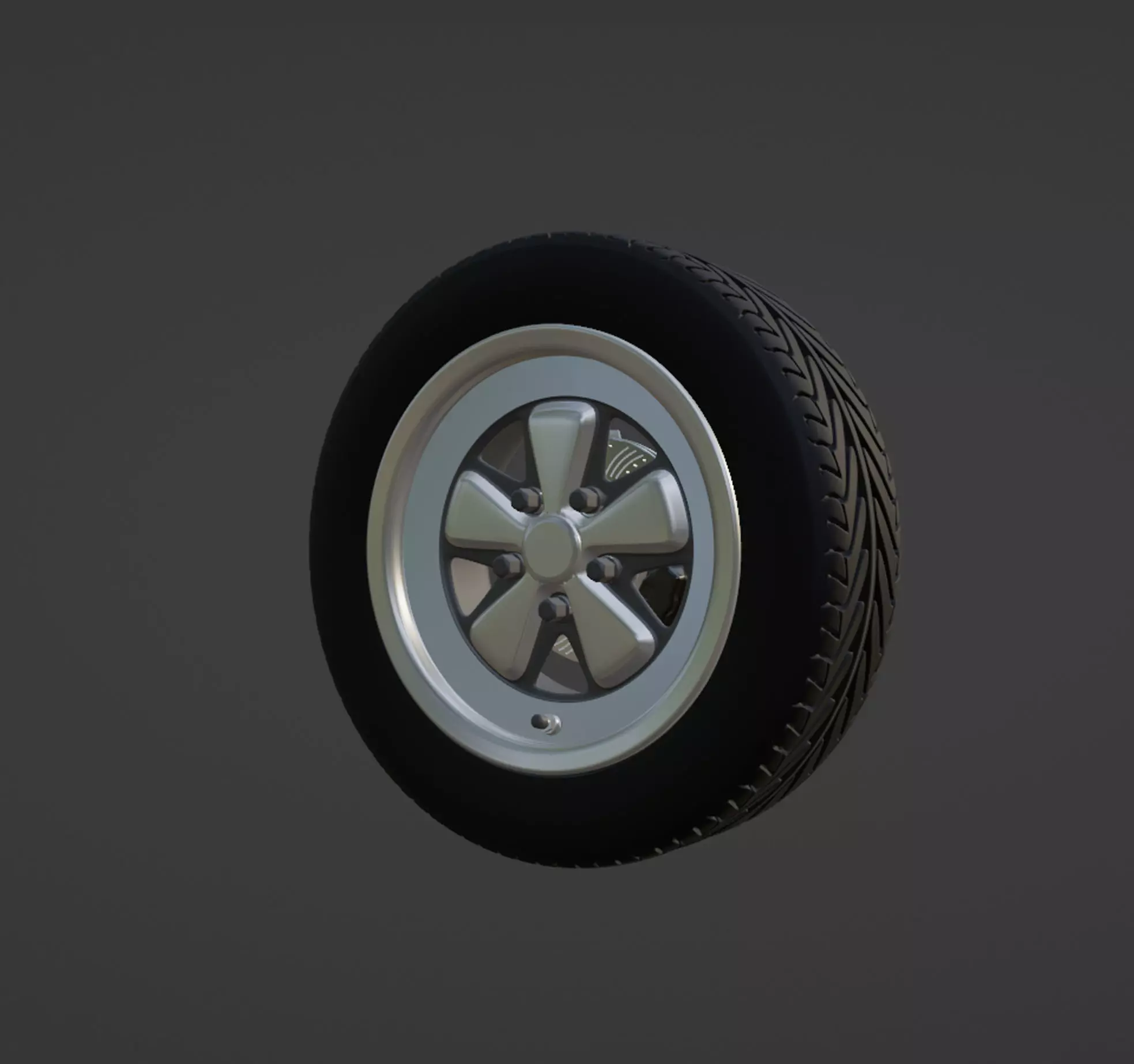 The Fuchs wheel or Fuchsfelge is a wheel made for the first Porsche 911 model in the early 1960s.[1] Designed in conjunction with Otto Fuchs KG [de], Porsche modeler Heinrich Klie and Ferdinand Porsche Jr for the 1967 model year Porsche 911S, the Fuchs wheel was the first light-weight forged wheel to be fitted to a production automotive vehicle. They provided the rear-engined sports car with a reduction in un-sprung mass, using an alloy wheel.
