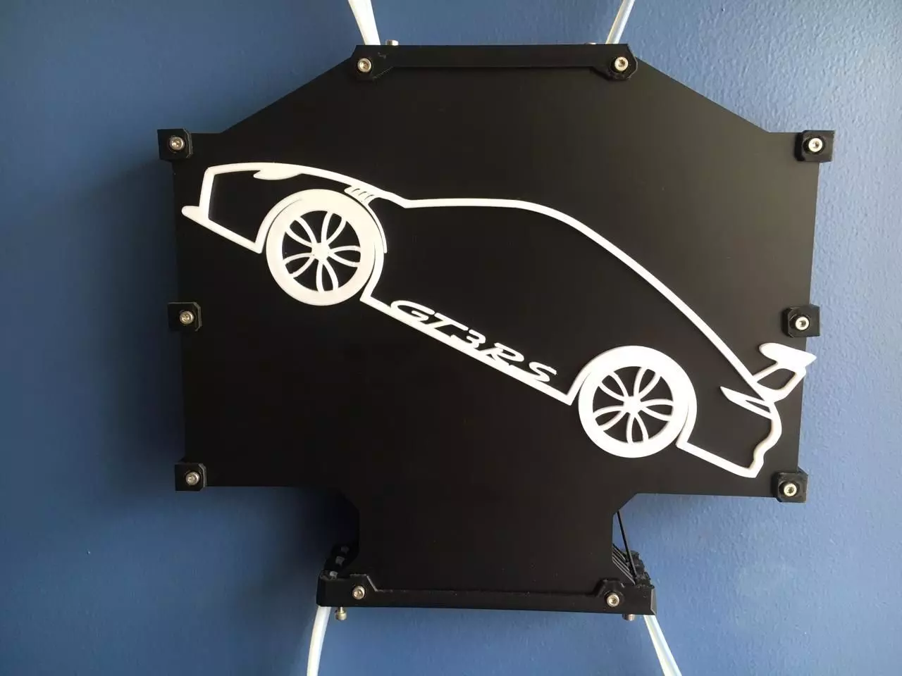 This is a silhouette of a 2019 porsche GT3RS, you can use it as a decoration for your bedroom, in the wall, in your end table, and different places, it comes with some standing feet that you can 3D print separately. Also you can scale the model to use it as a bookmark. Perfect for a gift to someone that is passionate about cars. It can also be laser cut, or machined.