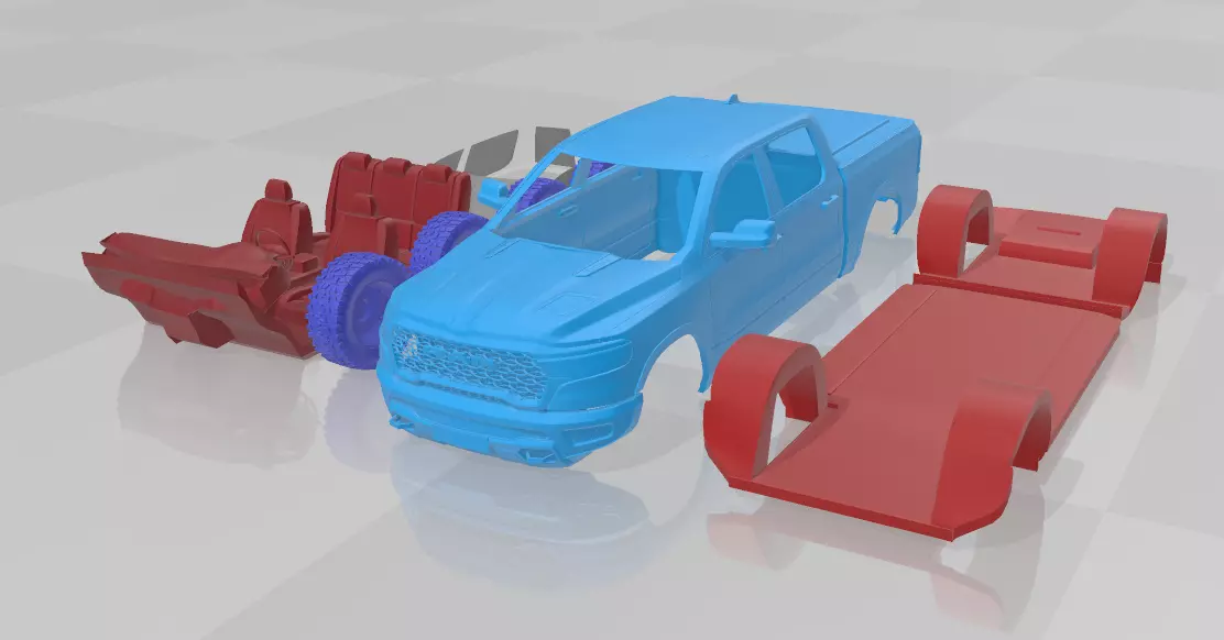 This STL model set features a fully separable 3D printable version of the 2025 RAM 1500, designed for high-detail scale modeling. Each part has been meticulously optimized for 3D printing, allowing for realistic assembly and customization. This model is perfect for collectors, hobbyists, and automotive enthusiasts who want to recreate the latest generation of RAM’s full-size pickup.