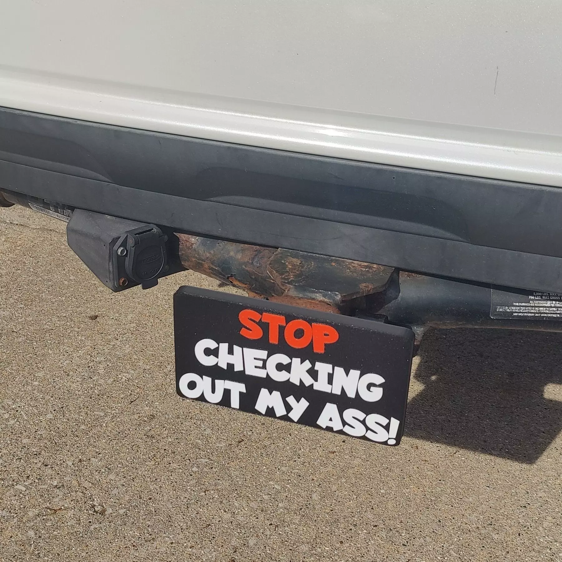 Everyone like a funny sign on the back of their vehicle! Designed for two inch trailer hitch receivers!