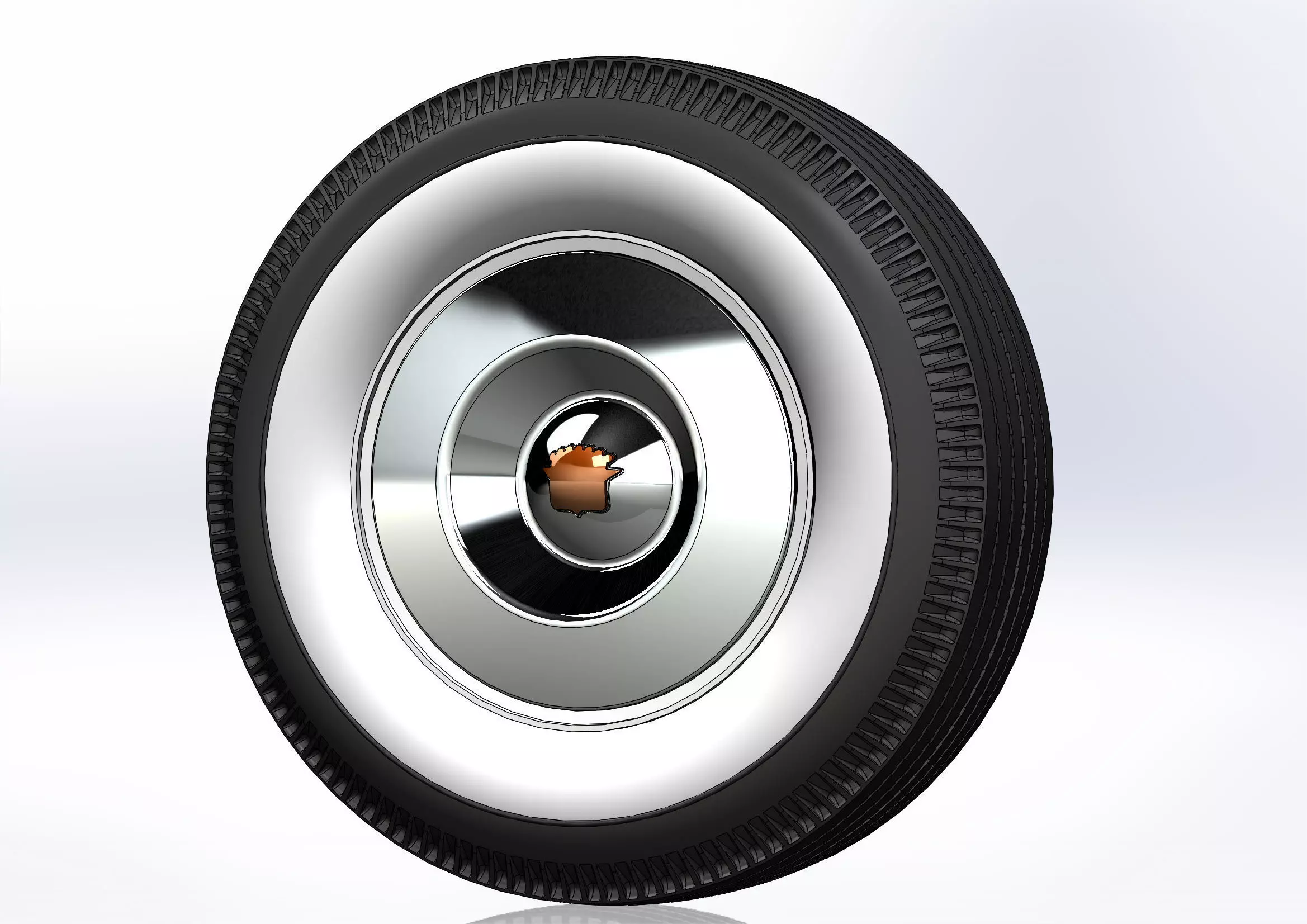 3D-printable wheels sombrero hubcaps 1953 Caddy 62/Fleetwood (rims and tyres separately) for your scale- or RC model. Rims: 15x7; Tyres: 7.60-15 with a detailed tire tread pattern