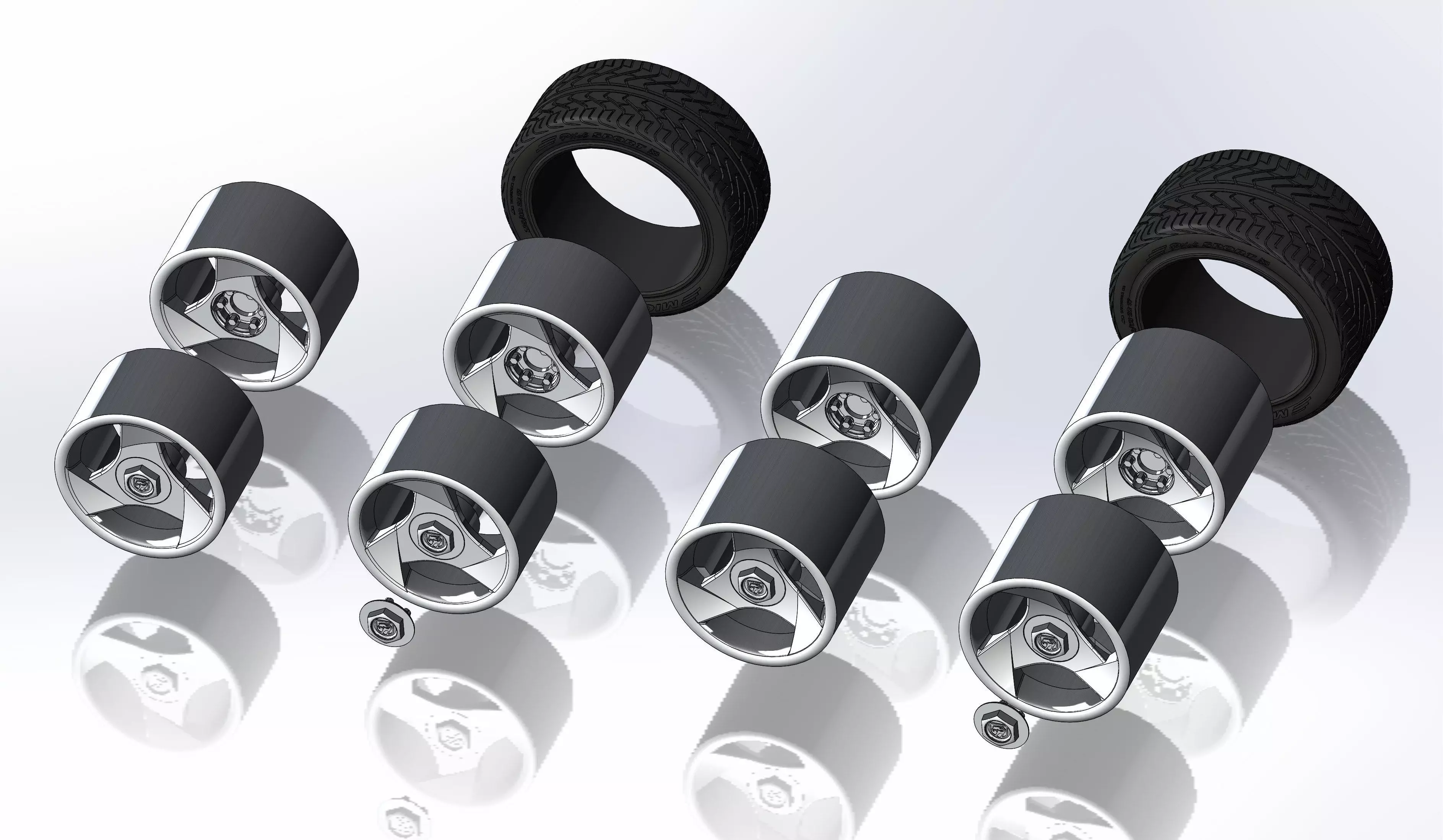 3D-printable wheels (rims, tyres and decorative caps - separately) for your scale- or RC model .